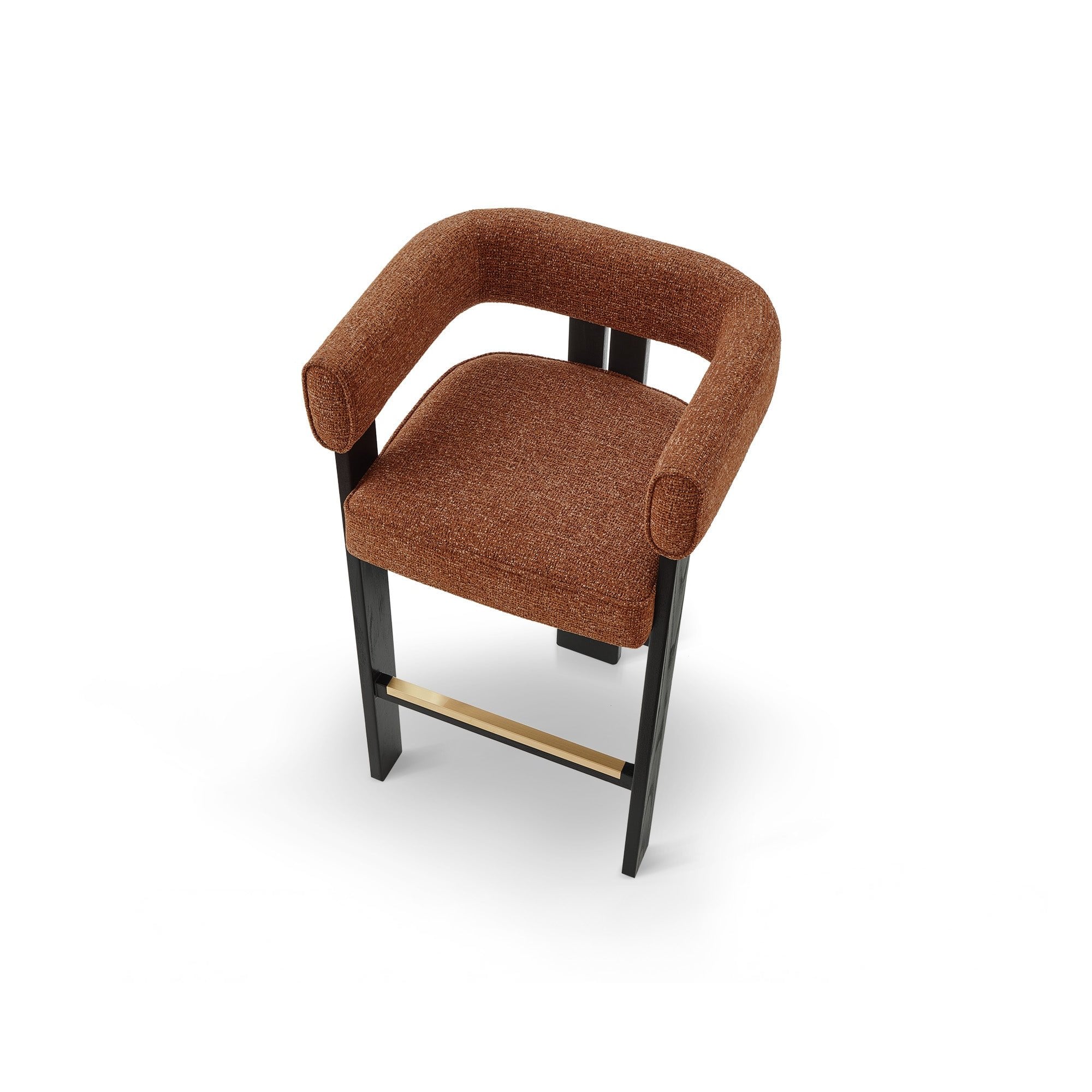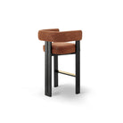 The Tilda Bar Stool in Bari Chestnut Red captivates with its vibrant upholstery, effortlessly merging comfort and style. Curved to perfection, it offers both aesthetic appeal and ergonomic support. Crafted from sustainable recycled fabric and sturdy Matt Black Solid Ash Wood, this stool suits both hospitality and residential settings, adding modern flair to lounges, dining areas, or your kitchen.