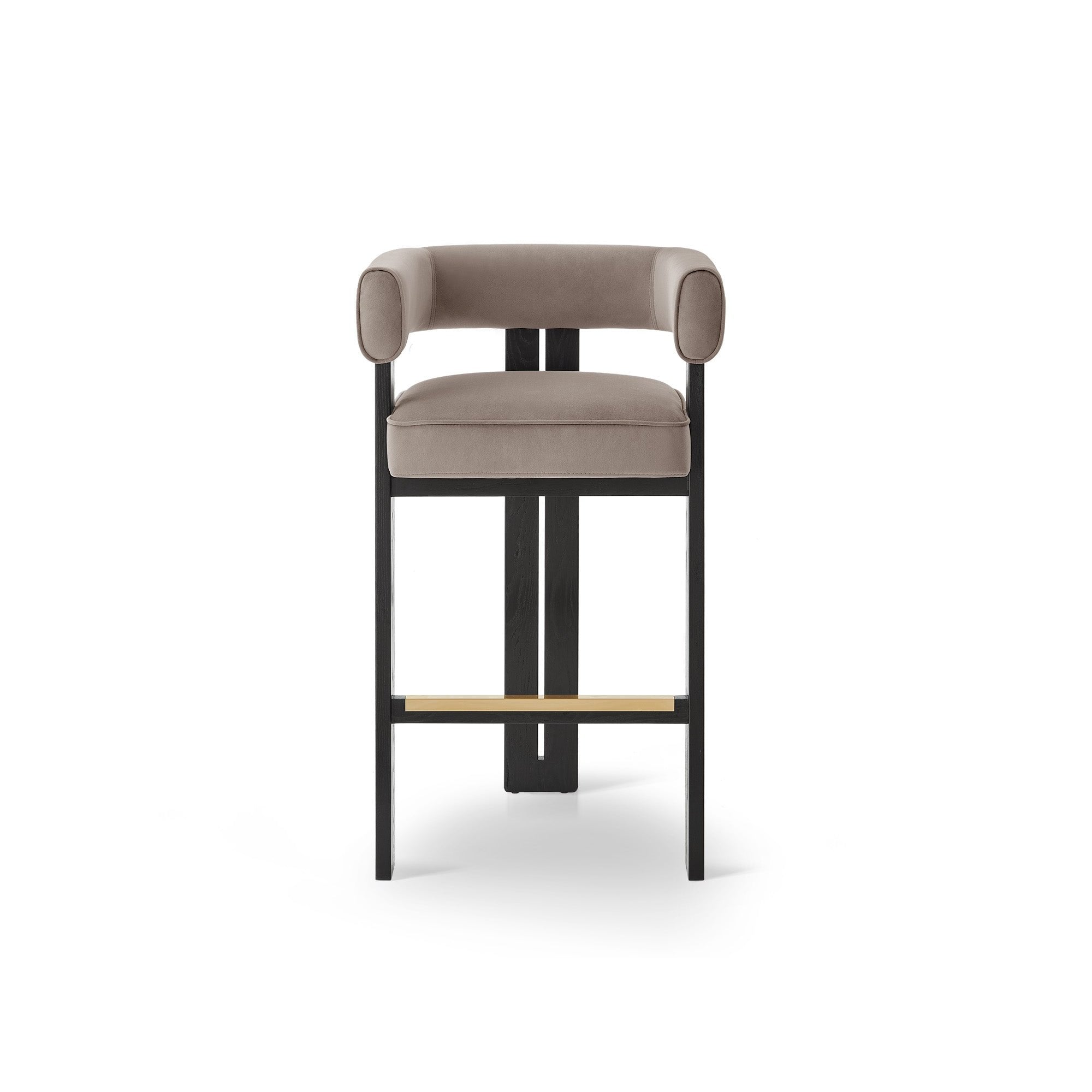 Introducing the Tilda Bar Stool in luxurious Megan Mink, a captivating blend of style and comfort. Its soft mink hue elevates any living space, while the expertly designed curved head and backrest ensure optimum relaxation. Crafted from eco-friendly recycled materials and sturdy Matt Black Solid Ash Wood, this stool is perfect for hospitality or residential settings, providing an inviting spot for gatherings or quiet moments with a drink.