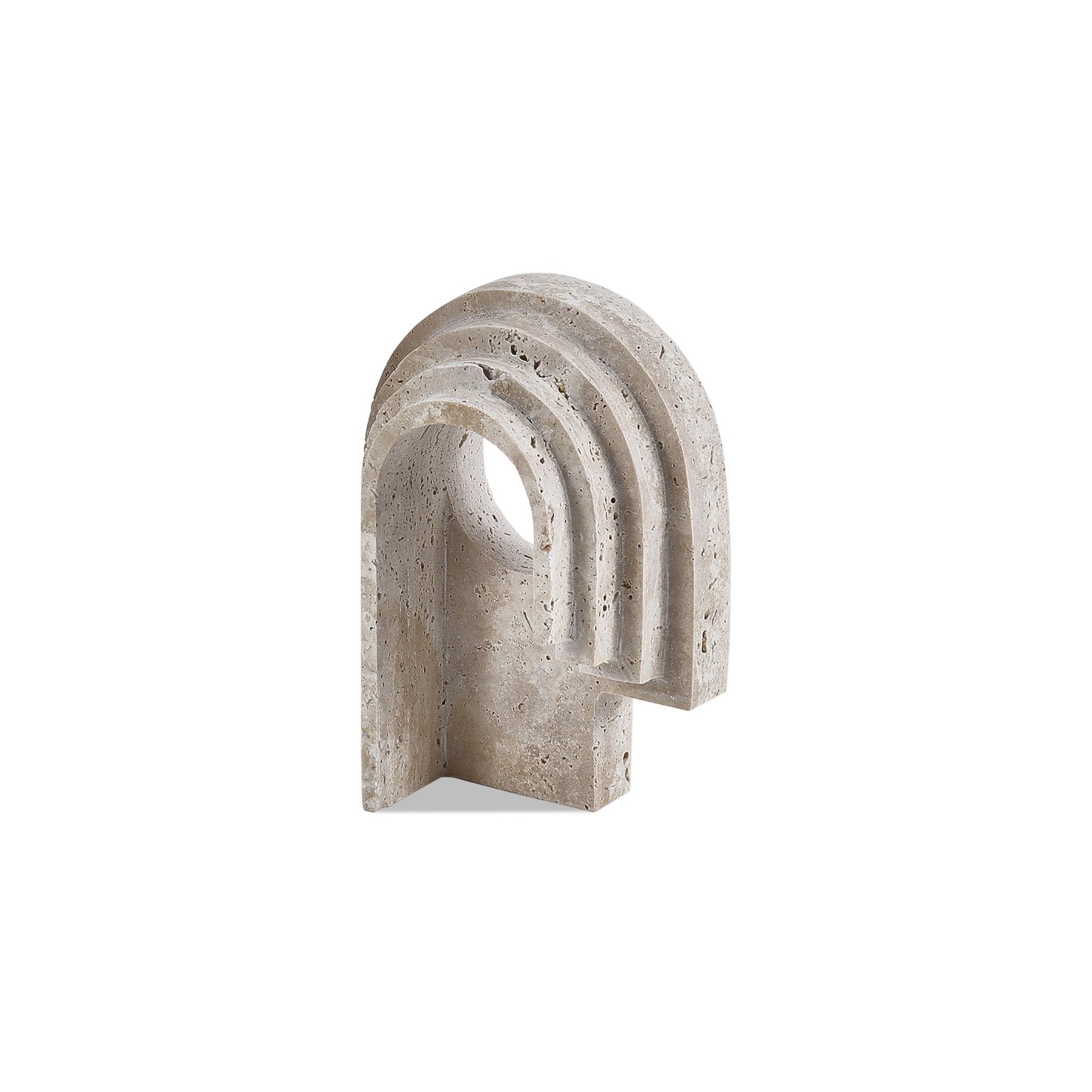 Immerse yourself in the captivating beauty of the Toccino Small Sculpture. Crafted from exquisite beige marble, it features intricate arch designs intertwined with the stone's natural veins, creating a stunning focal point suitable for any interior. Perfect for decorating living rooms, dining areas, or studies, this sculpture adds a touch of art deco charm with its understated elegance.