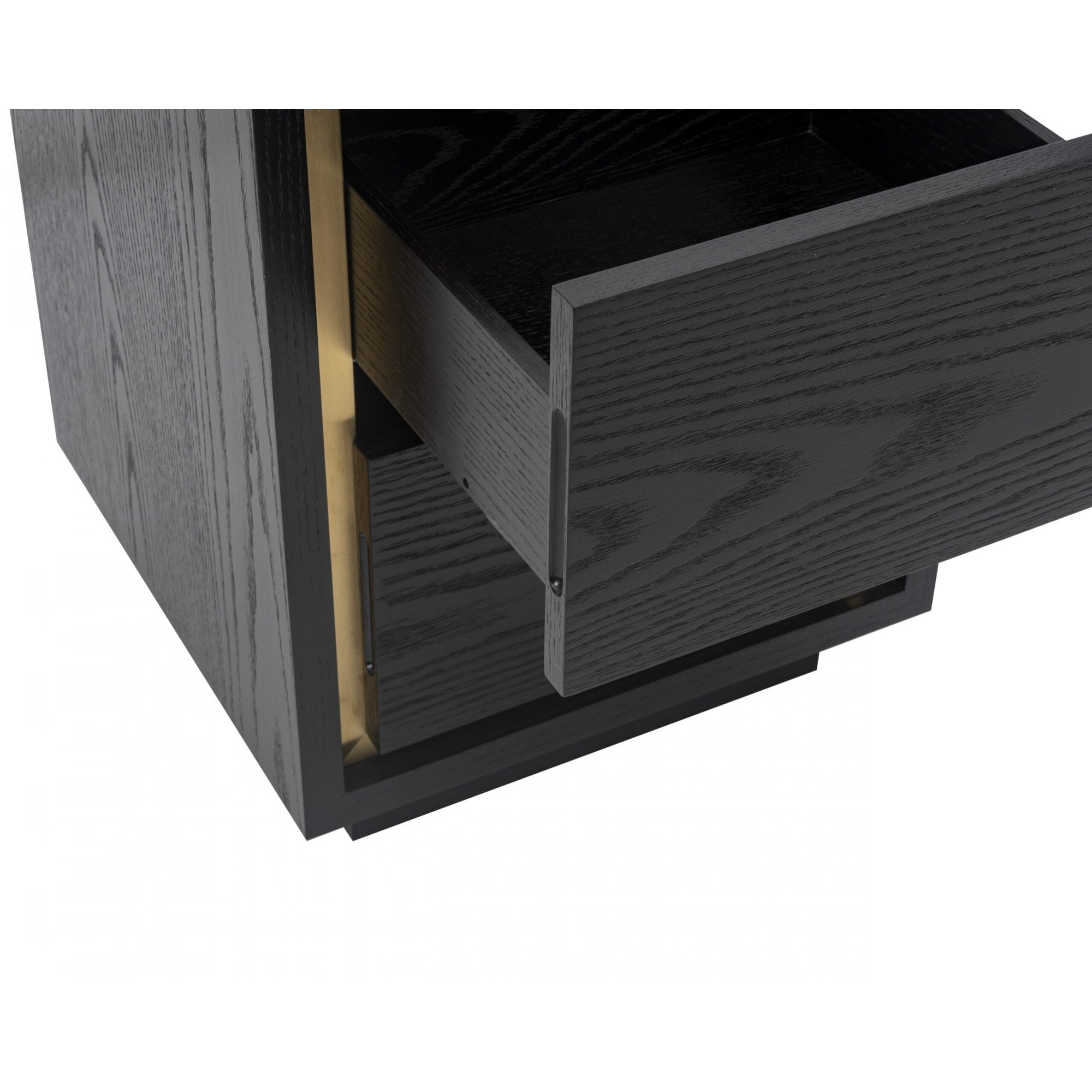 Complete your stylish bedroom with the Utopia Bedside Table, crafted from exquisite Wenge-finished oak veneers. Its elegant design showcases brass accents and recessed frames around the drawers, adding depth and character. With smooth, self-closing drawer runners, this bedside table seamlessly combines stunning visual appeal with practical storage, making it an ideal choice for both homes and hospitality settings.