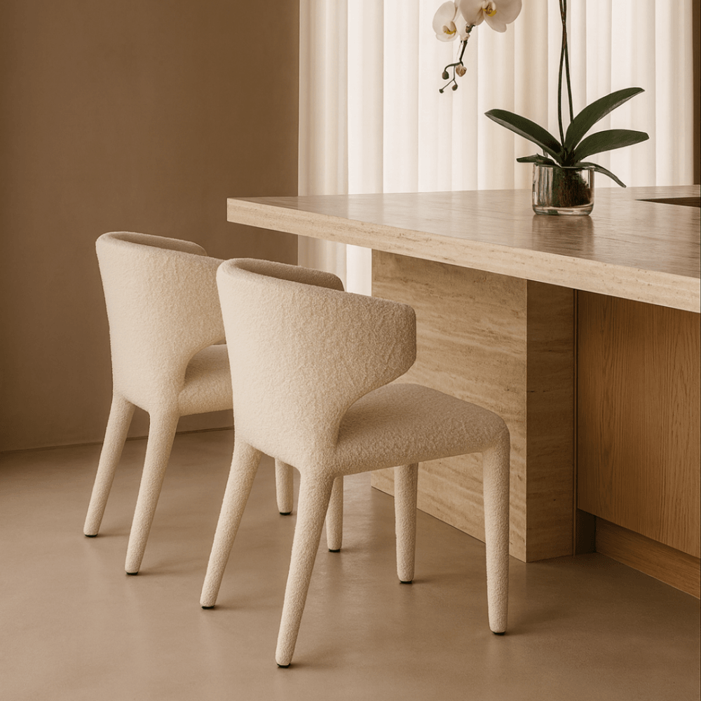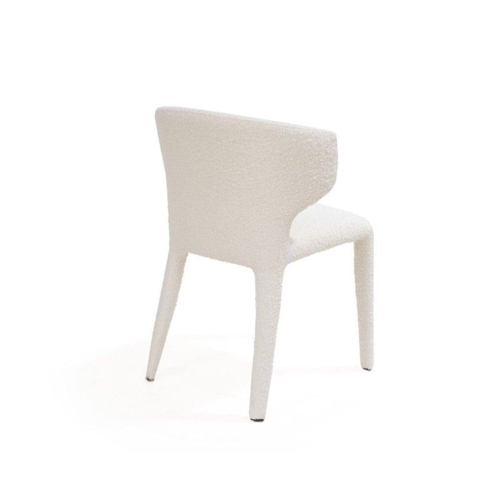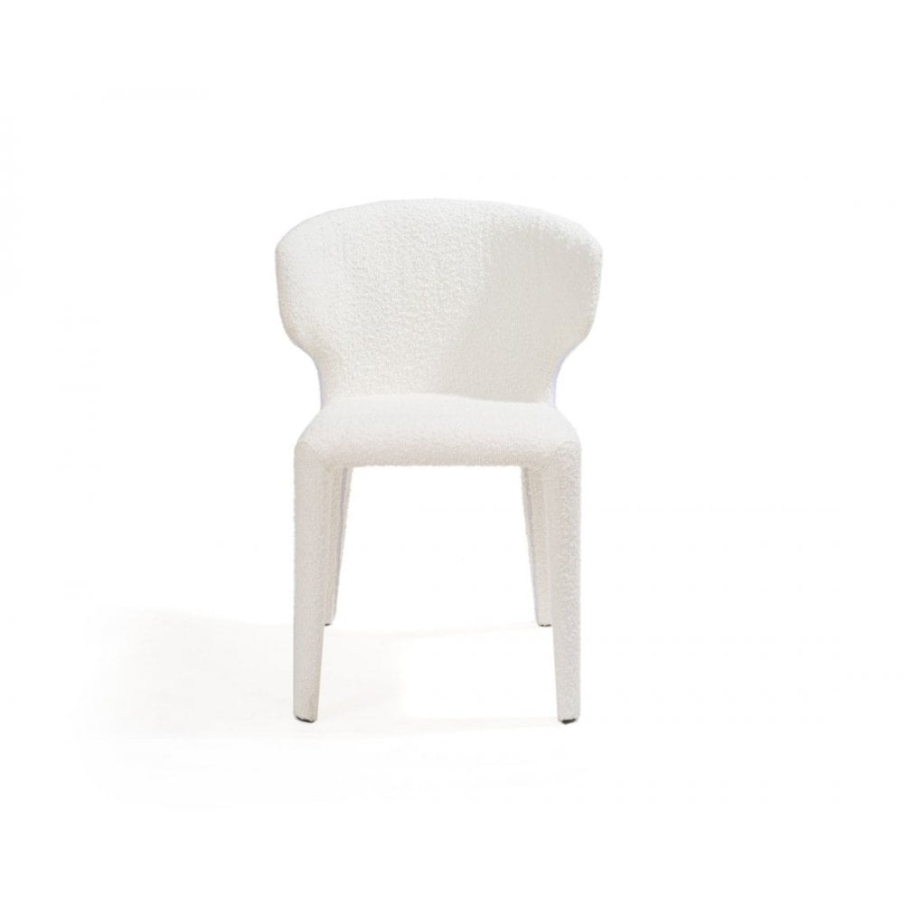 The Vela Dining Chair offers style, comfort and elegance. This chair features a curved back for superior comfort, with the seat and back-rest upholstered in a luxurious Chex Polar Bouclé fabric. Its strong and sturdy construction makes it ideal for everyday use. Whether in your dining room or as a part of a leisurely gathering, the Vela Dining Chair is sure to be the focal point of any setting.