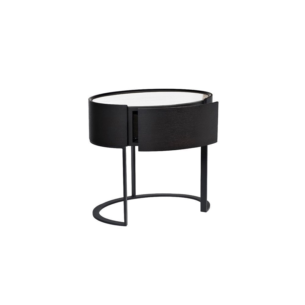 Featuring a convenient one-drawer storage solution, it allows for tidy organization of bedside essentials. What sets the Verge Bedside Table apart is its unique base shape, adding a distinctive flair to the overall design. This striking combination of materials and shapes makes the Verge Bedside Table a statement piece that seamlessly balances form and function for a sophisticated bedside experience.