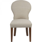 The Walker Upholstered Dining Chair epitomizes understated elegance. Its clean, classic silhouette features a fully upholstered seat and backrest, complemented by a gracefully curved back that gently narrows towards the seat, creating a refined and timeless profile. Crafted from solid mango wood, the chair is upholstered in luxurious linen-effect fabric in a soft neutral hue, adding warmth and versatility. Antique finish nail detailing between frame and upholstery add both class and character. Perfect for those seeking a sophisticated yet relaxed aesthetic.