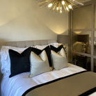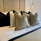 Celine in Fawn Satin - 2 x 20” Celine in Hessian Satin Piped with Gabrielle Soft Velvet in Black Noir