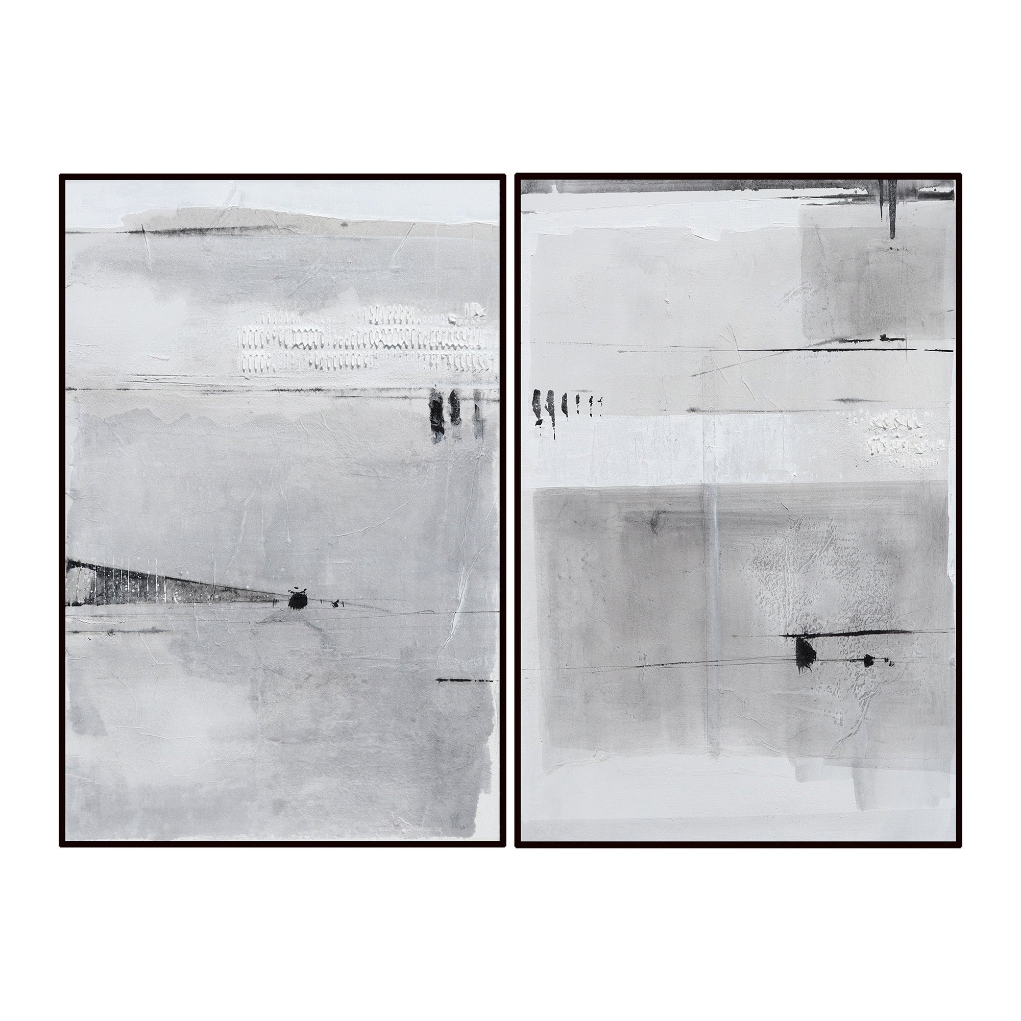 The Yarcha set of two oil paintings brings dynamic beauty to your space with their layered textures and greyscale design. Perfectly matched for an optimal aesthetic, these handcrafted artworks are ideal for any interior, adding depth and sophistication. Frame your wall beautifully with these complementary pieces, either displayed together or side by side, to create a harmonious visual narrative in residential or hospitality settings.