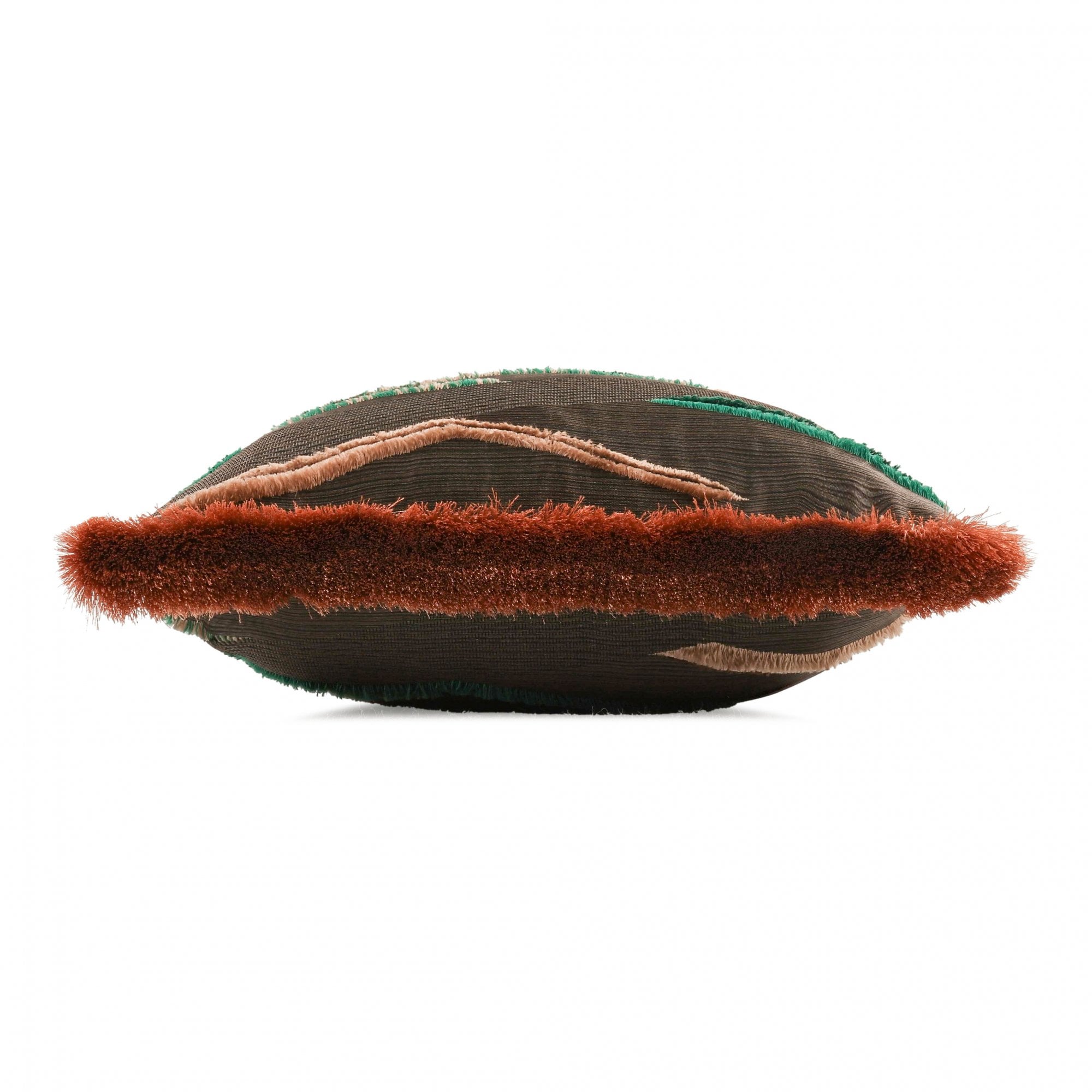 A statement geometric cushion crafted using a specialised fil coupé technique which sits on a fine linear ground formed from a unique combination of lustrous yarns, enriched with a luxurious brush fringe detailing.