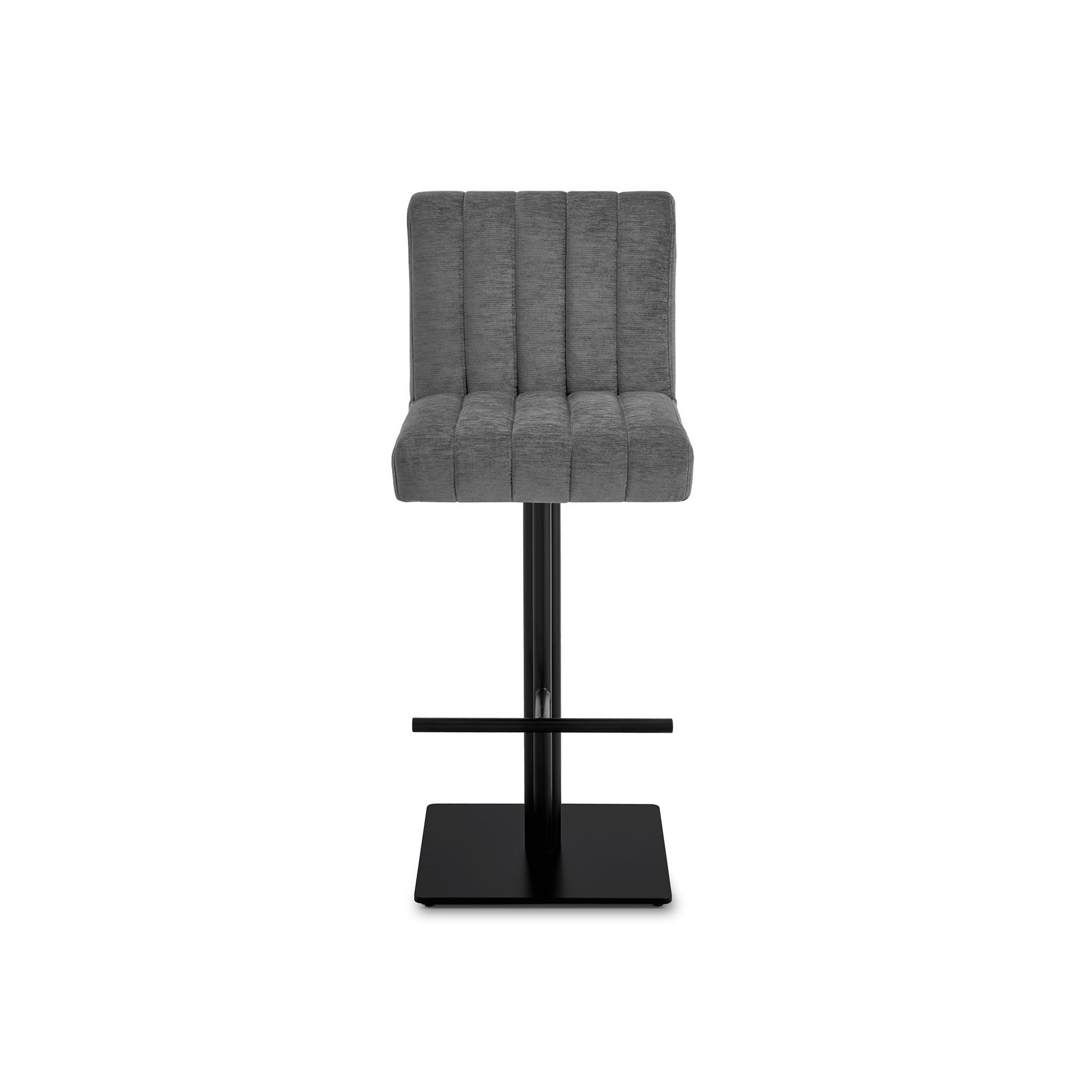 Indulge in the unmatched sophistication of the Dukes Bar Stool, upholstered in luxurious Sysley Chalk II chenille fabric. This bar stool features a supportive backrest and a matte black steel base, ensuring comfort and style. Perfect for casual breakfasts or lively gatherings, it combines classic charm with contemporary elegance.