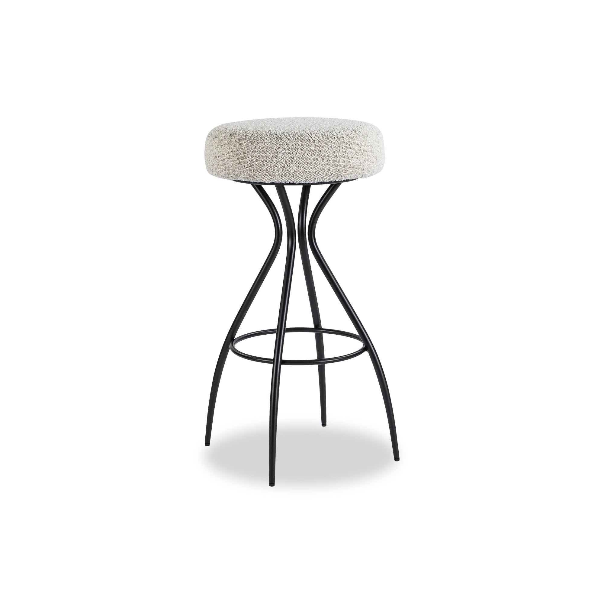 The Hydra Bar Stool in Boucle Sand combines slender sophistication with a timeless design. Featuring a padded seat atop a distinctive, open hourglass base with tapering legs, this stool is perfect for stylish dining or casual entertaining, adding elegance to any bar or kitchen setting.