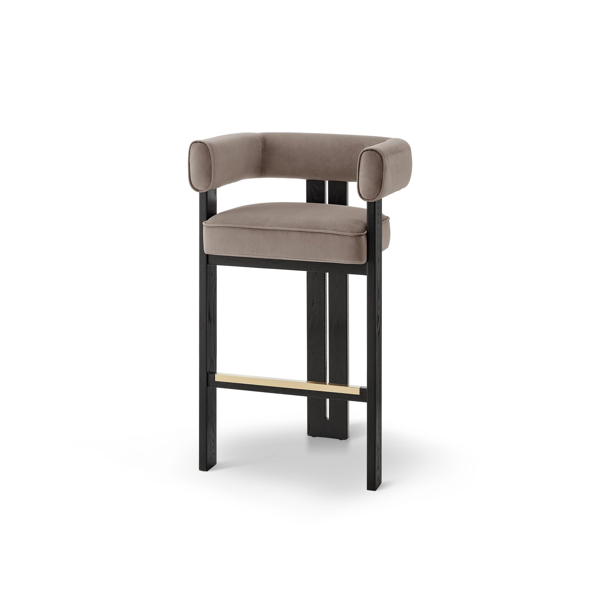 Introducing the Tilda Bar Stool in luxurious Megan Mink, a captivating blend of style and comfort. Its soft mink hue elevates any living space, while the expertly designed curved head and backrest ensure optimum relaxation. Crafted from eco-friendly recycled materials and sturdy Matt Black Solid Ash Wood, this stool is perfect for hospitality or residential settings, providing an inviting spot for gatherings or quiet moments with a drink.