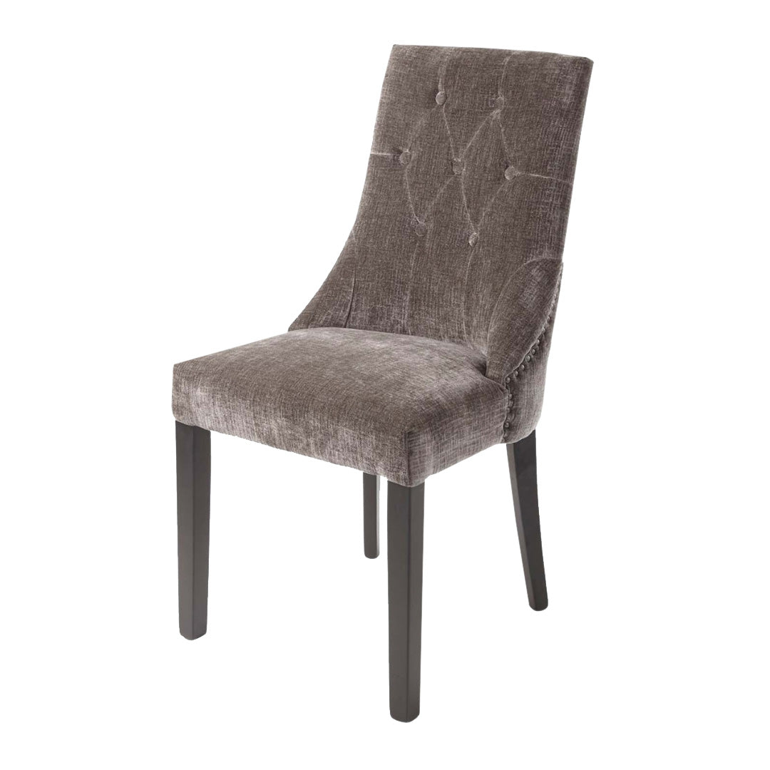 The Addie Chair in a mouse fabric is a comfortable and stylish seating option that is perfect for dining rooms and offices. Its plush upholstery invites you to relax, while its sleek design adds a modern touch.