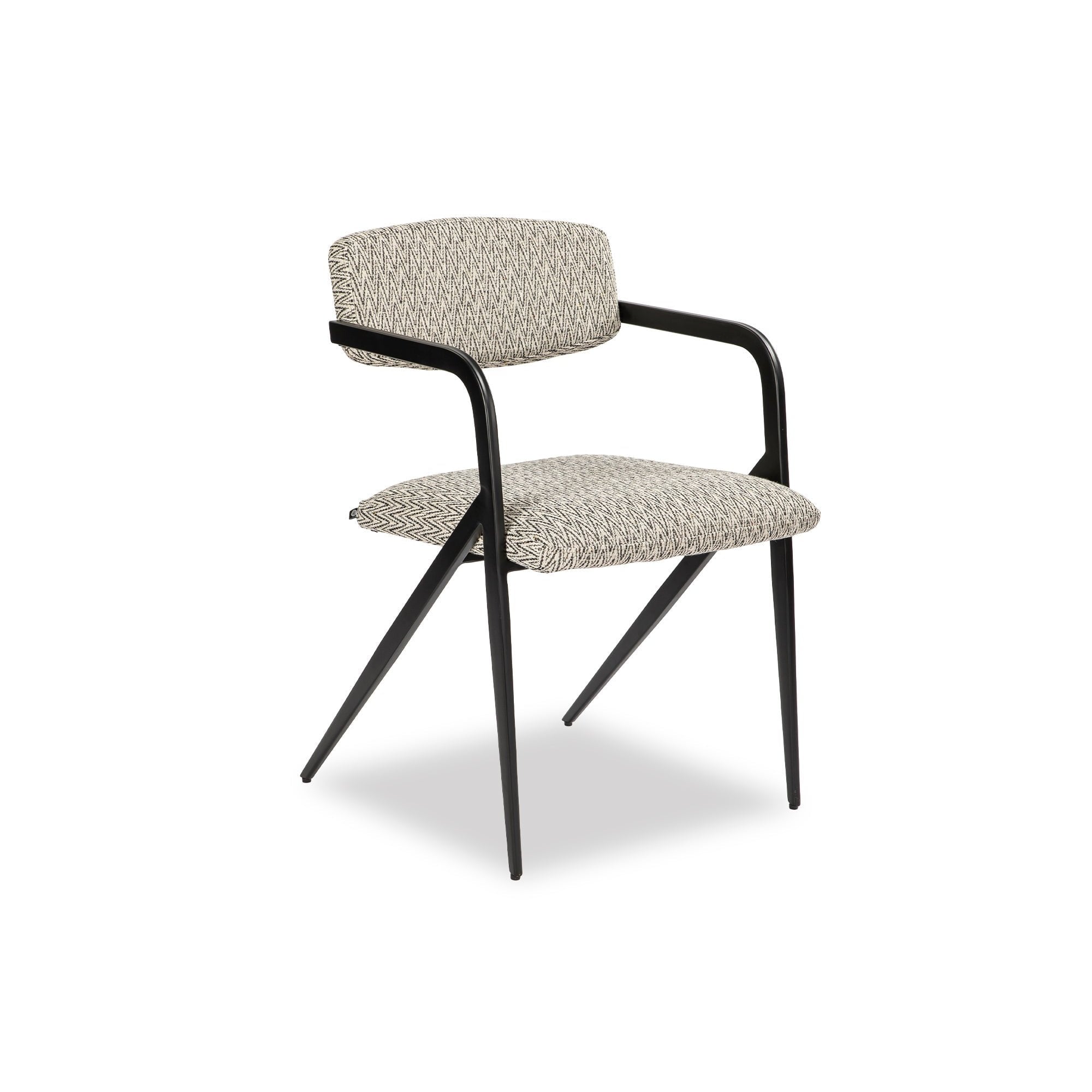 The Alpar Dining Chair combines style and quality effortlessly. Upholstered in the unique Emporio pattern fabric, this chair exudes elegance and charm. The clean lines and matt black steel legs provide a bold contrast, making it an ideal addition to any contemporary dining setting.