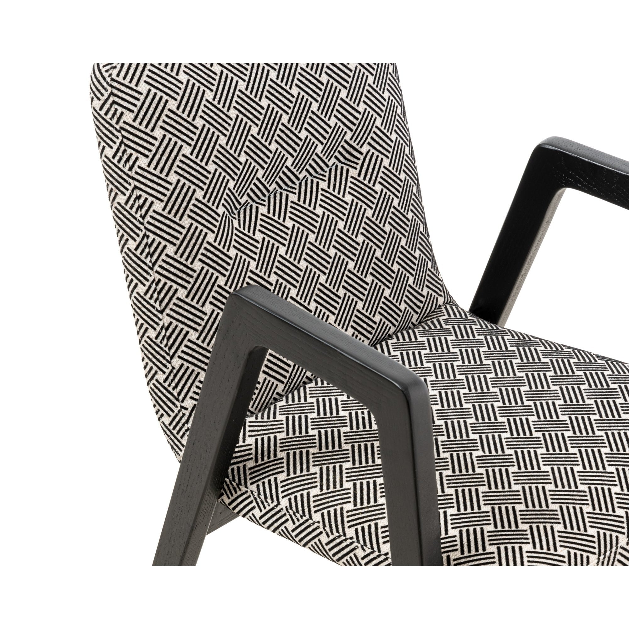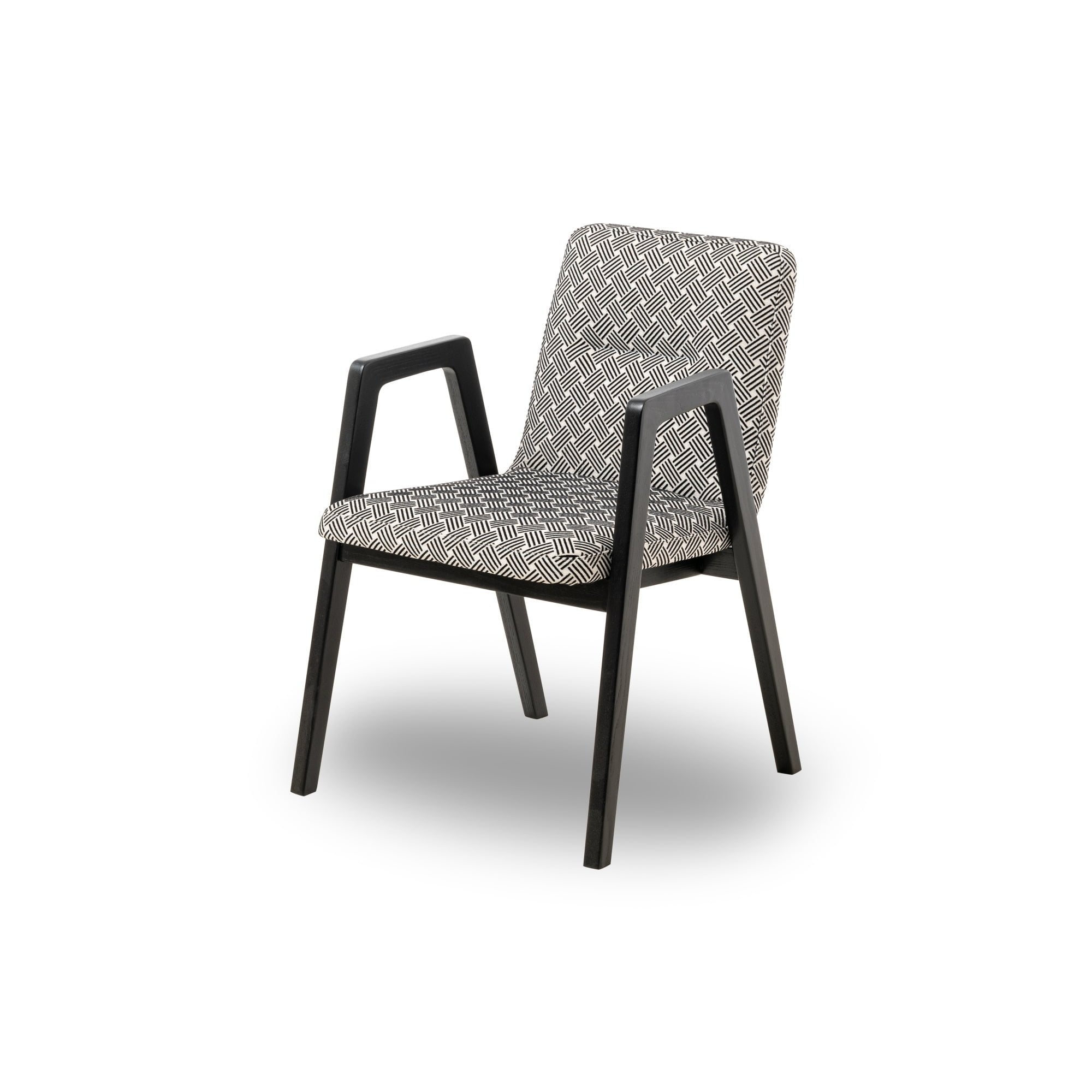 Elevate your dining experience with the Benson Dining Chair in Spike Black. Elegantly upholstered in luxurious fabric, this chair exudes contemporary chic while providing outstanding comfort. Supported by robust solid ash legs and trestle arms, it features a padded seat and a supportive backrest, making it perfect for both residential and hospitality settings.