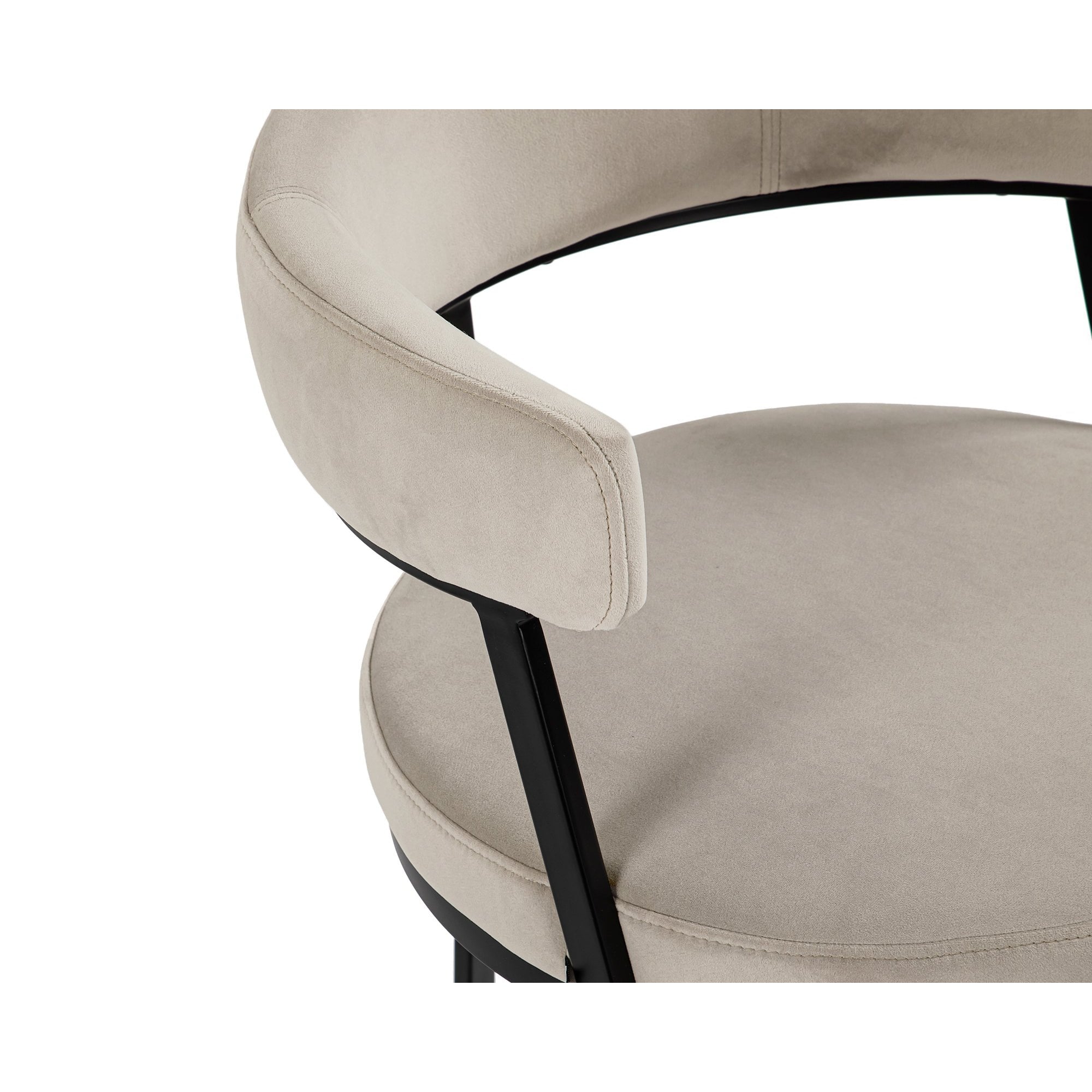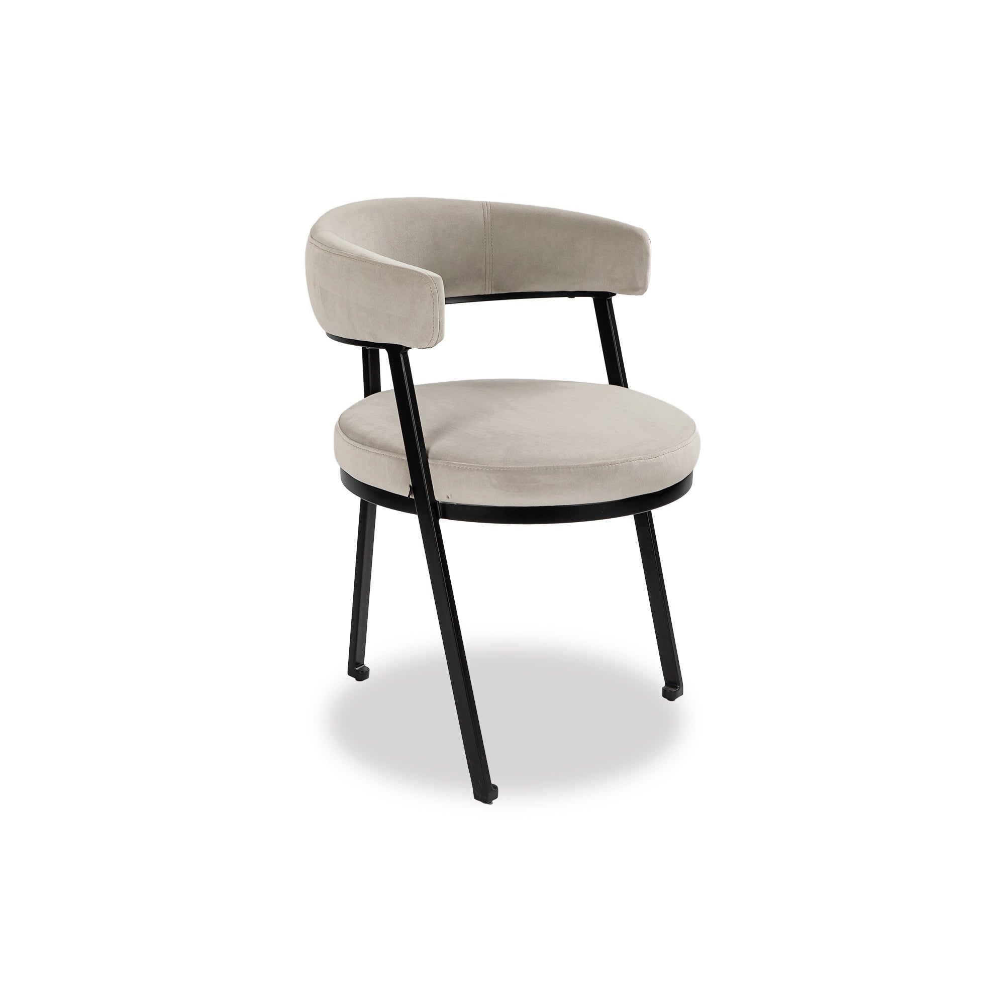 Transform your dining area with the Kaster Dining Chair, featuring a sophisticated light grey upholstery and sleek matte black metal legs. Crafted for comfort, its generously rounded seat and elegantly curved backrest invite relaxation and enhance your dining experience. Perfectly combining style and functionality, this chair is an essential addition to any modern space.