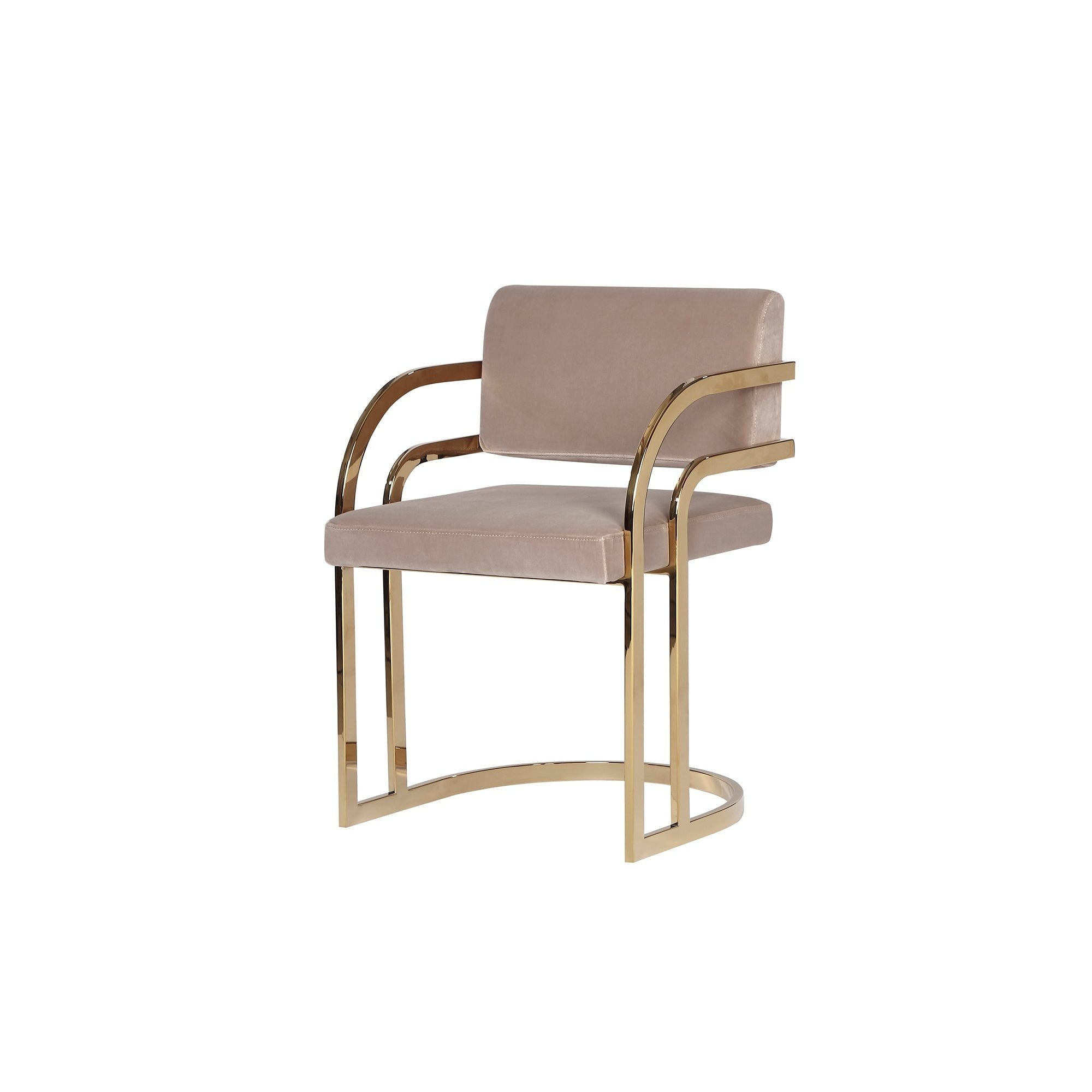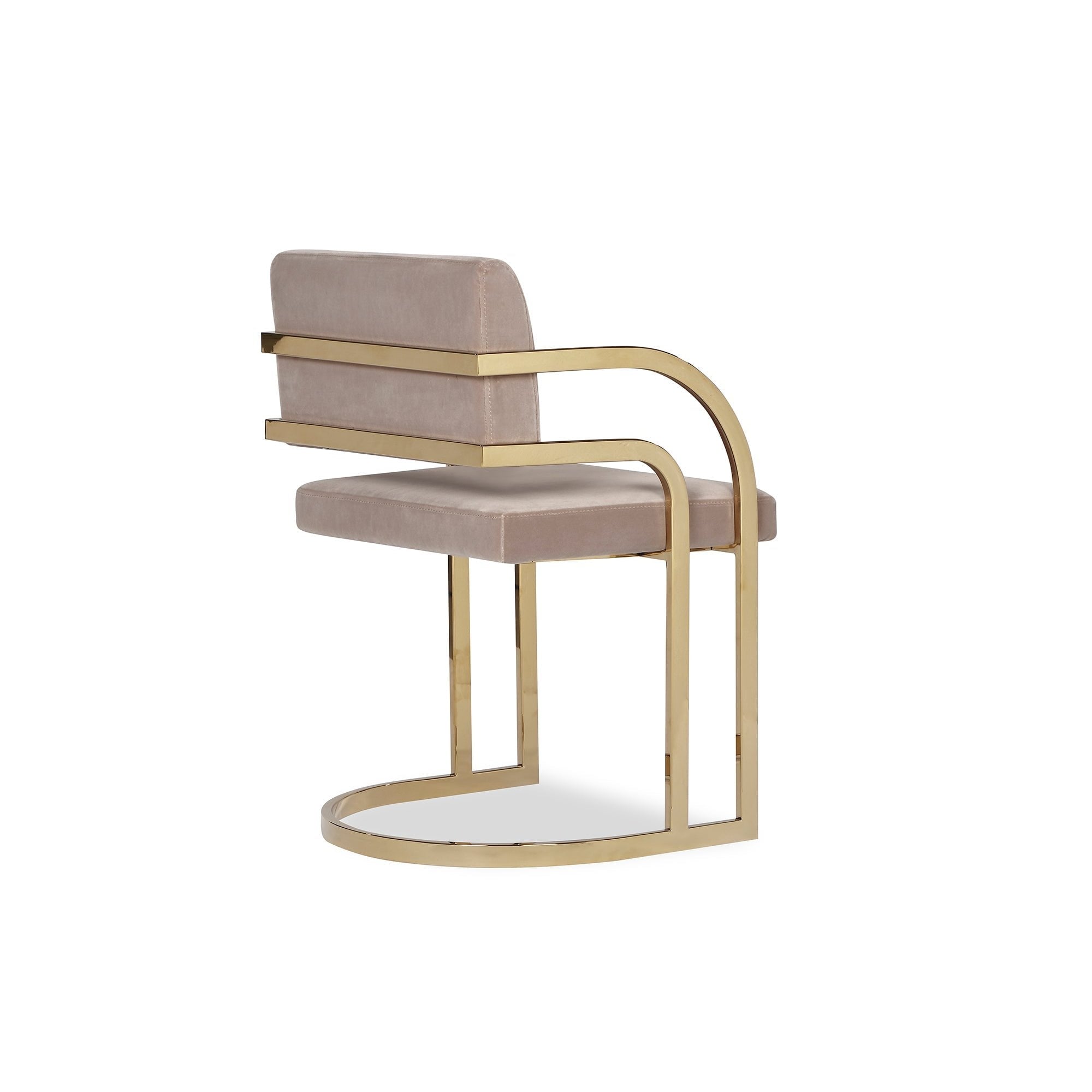 Discover the luxurious Dylan Dining Chair in Gainsborough Mink Velvet, enhanced with polished brass finish legs. This chair not only offers unparalleled comfort with deep padding but also exudes elegance, making it a perfect addition to your dining room decor.