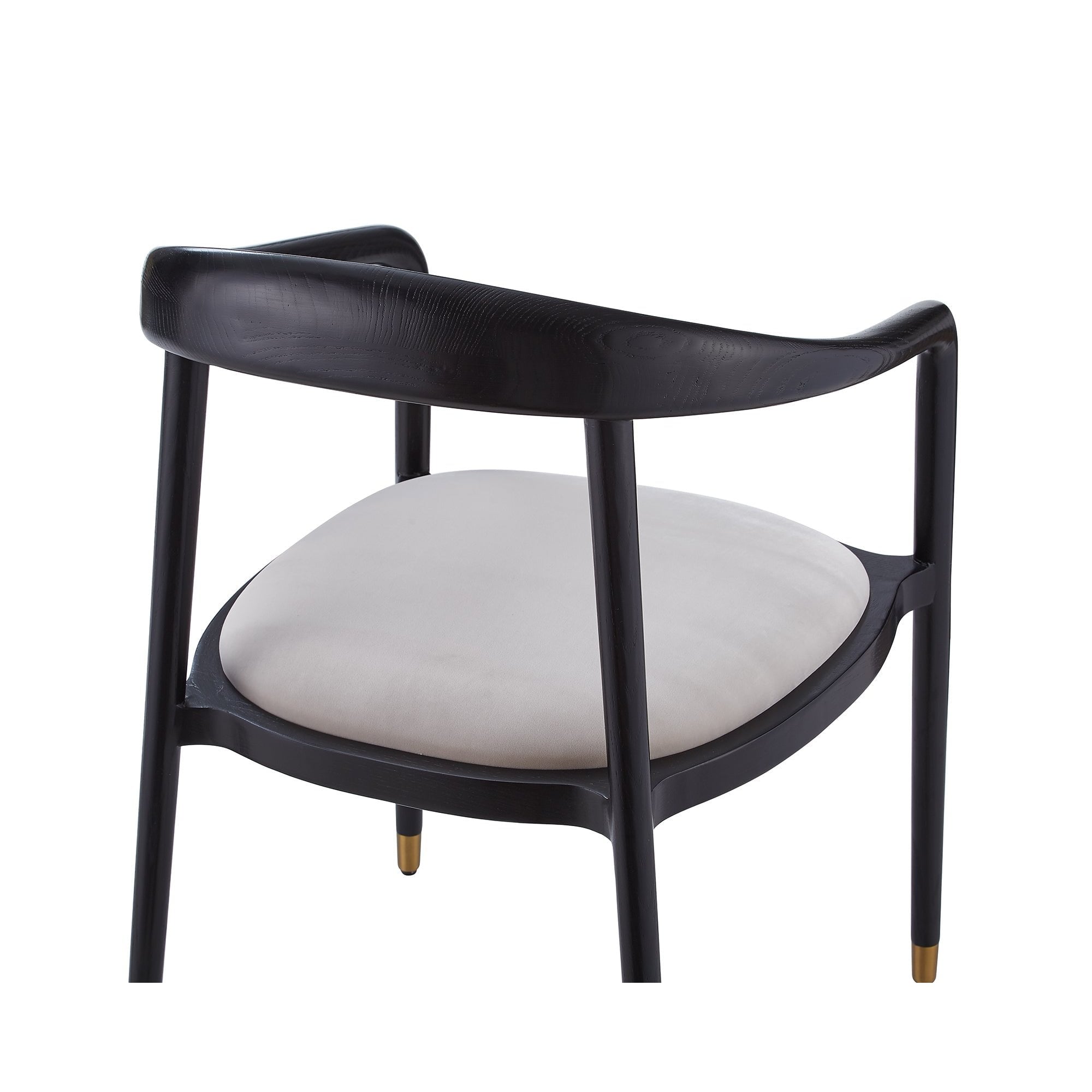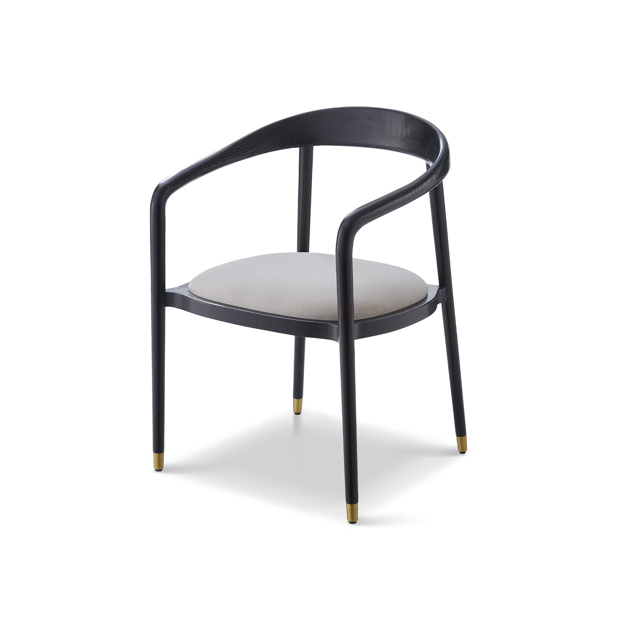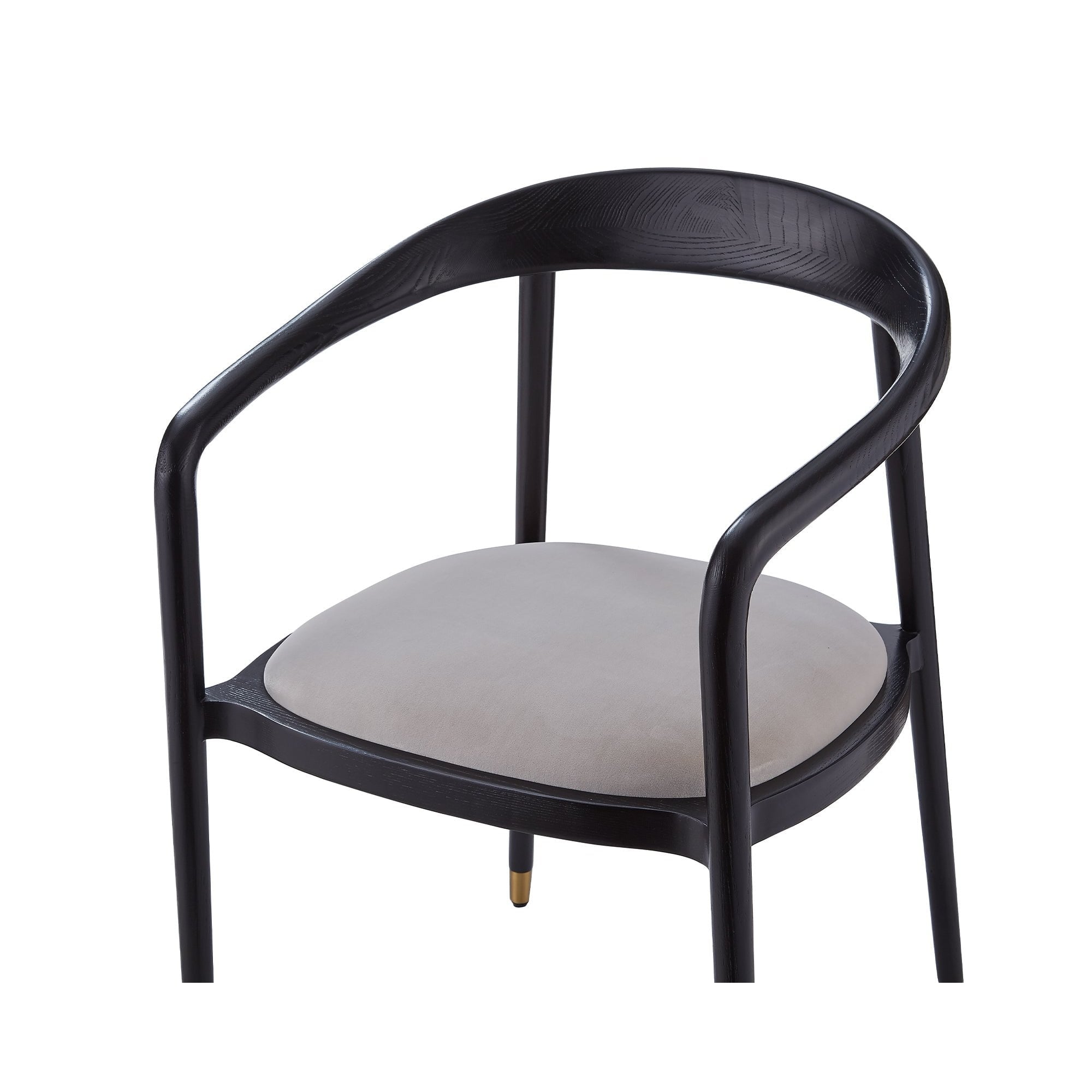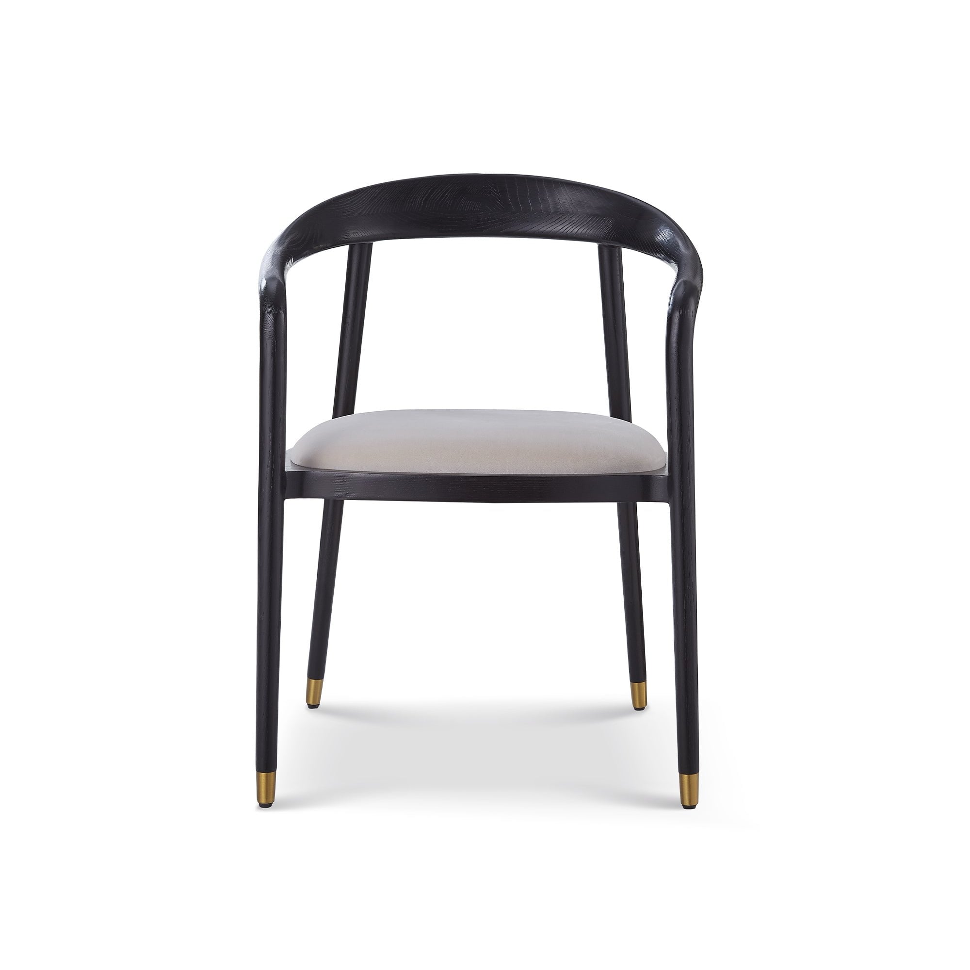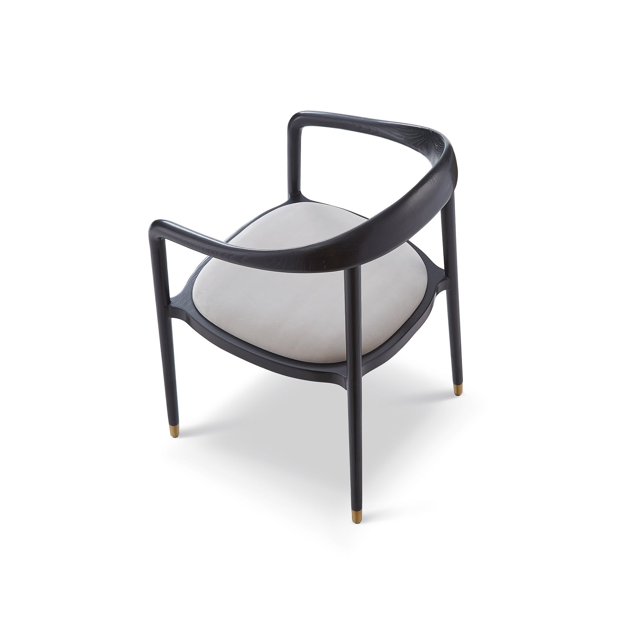 Elevate your dining experience with the Fluid Dining Chair in Gainsborough Ash Grey Velvet. Its exquisitely crafted silhouette features a sturdy solid ash frame complemented by elegant brass finish cappings. This versatile chair seamlessly blends with both contemporary and classic interiors, making it perfect as a stylish dining piece or a striking feature chair.