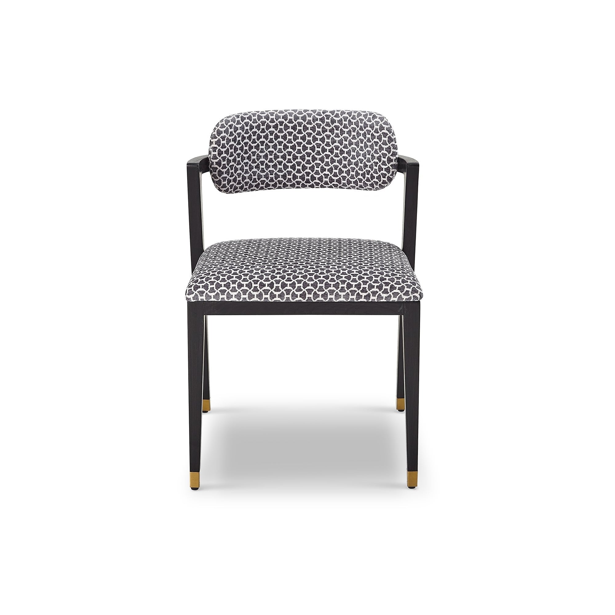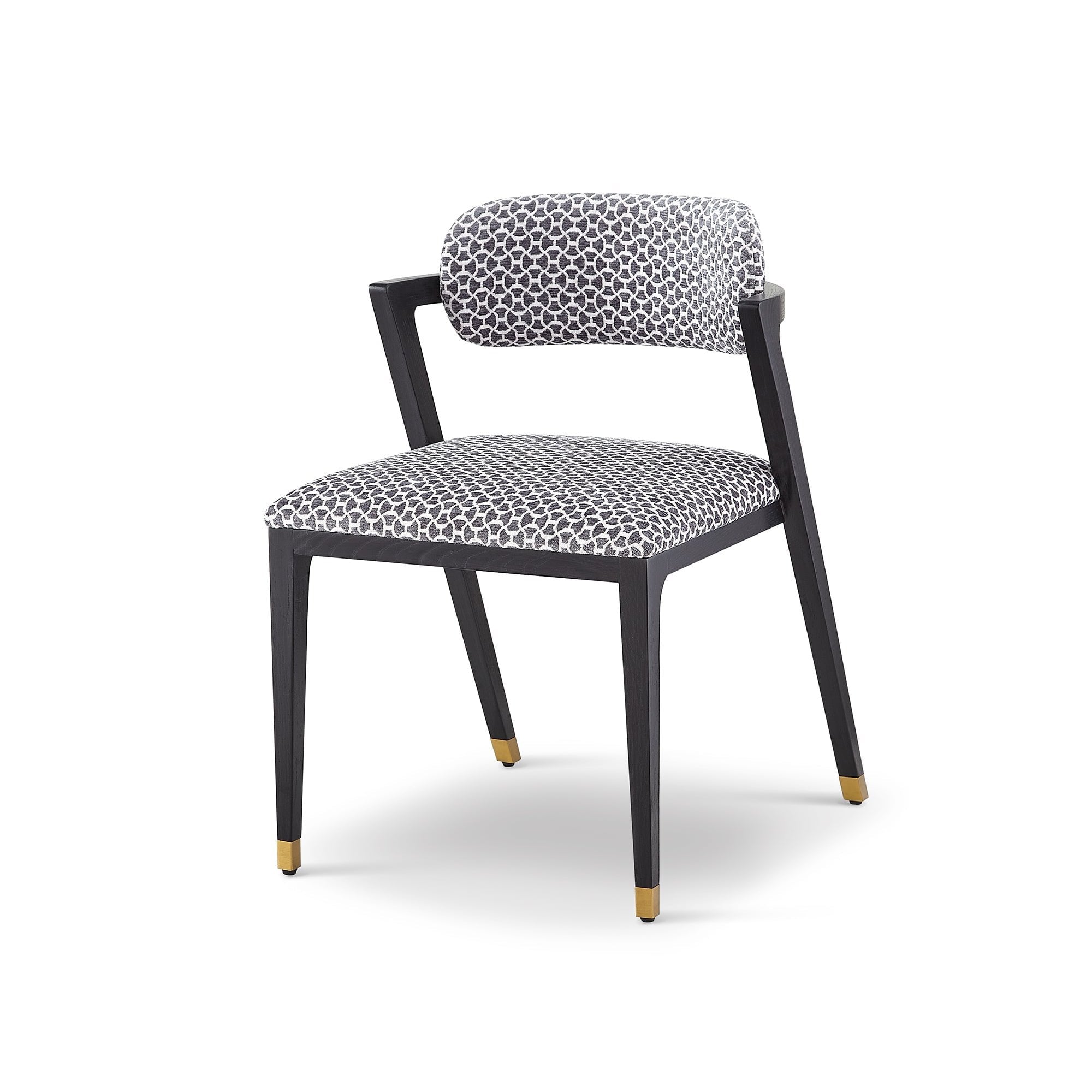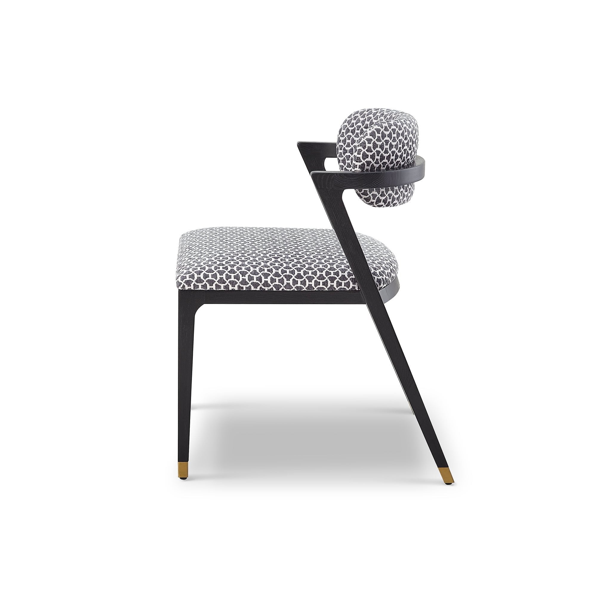 Experience the perfect blend of texture and elegance with the Greta Dining Chair in clover grey fabric. This stunning chair features diagonal back legs and a floating upholstered back support that combine comfort with modern artistry. Enhanced with brass finish cappings, the Greta adds charm and sophistication to your dining setup, creating a welcoming atmosphere for memorable meals.