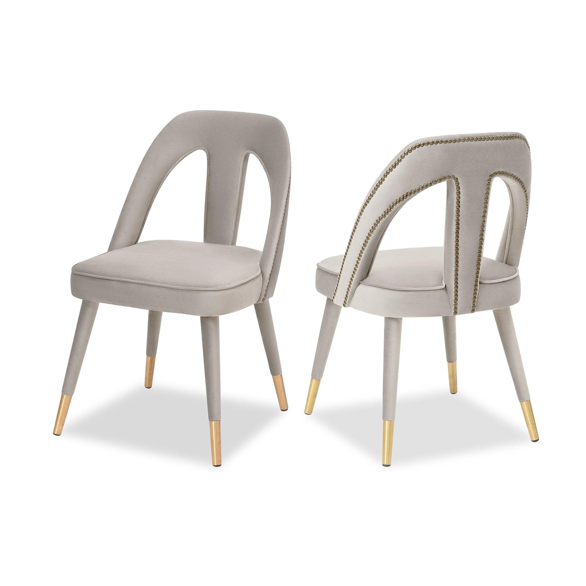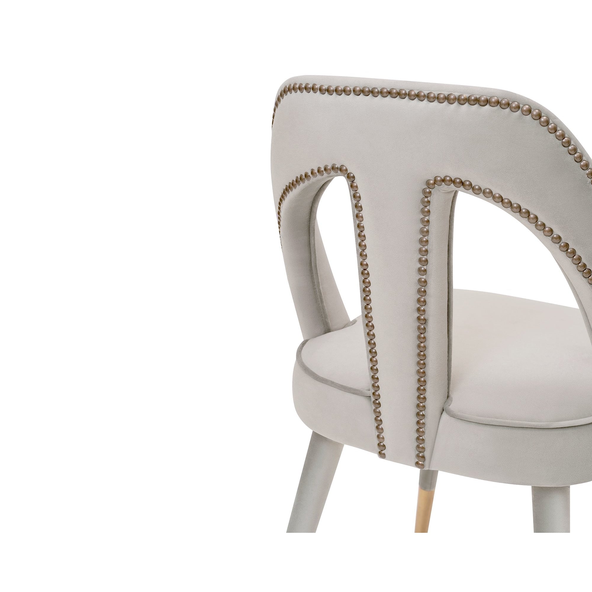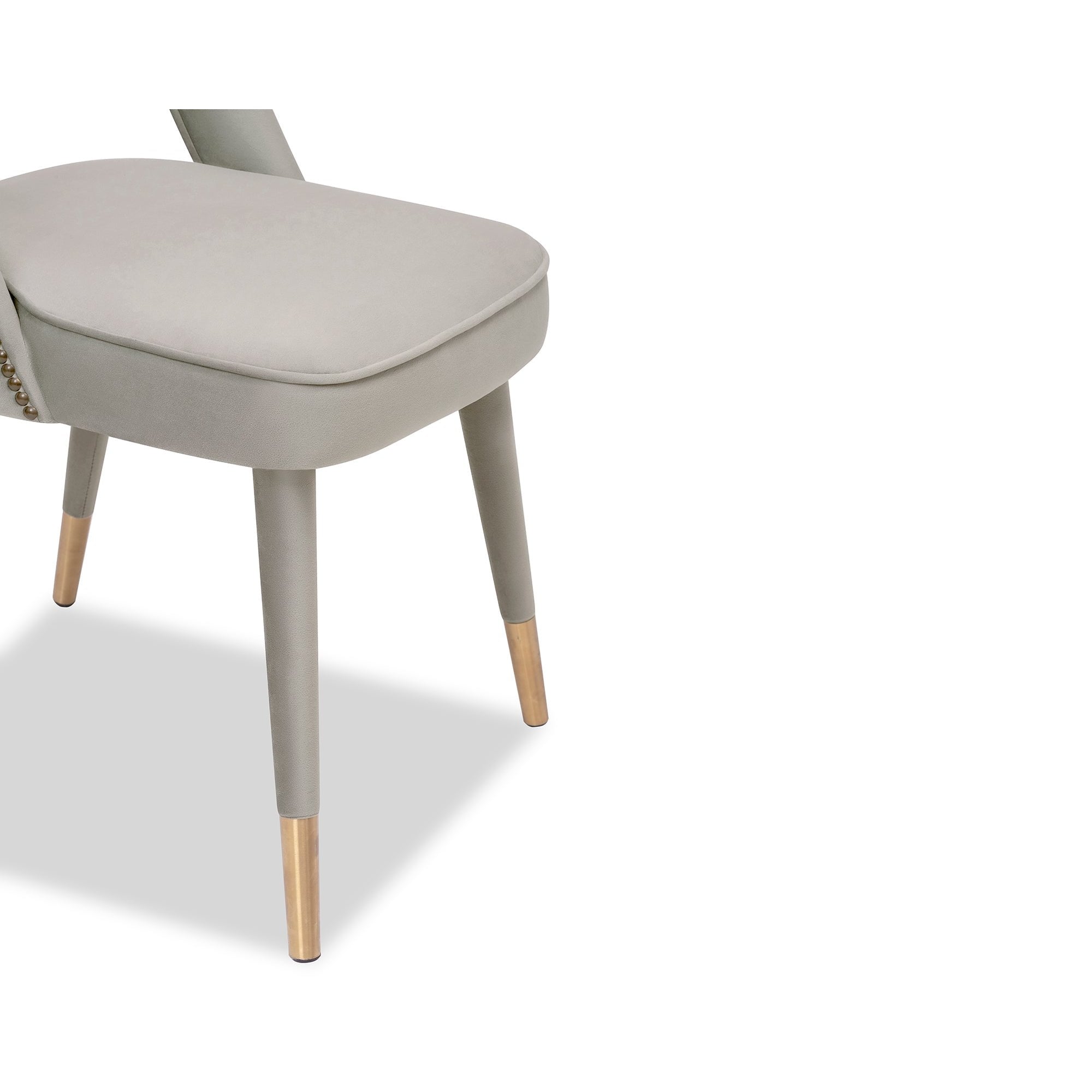 Elevate your space with the Pigalle Chair in Kaster Light Grey Velvet, featuring elegant gold cappings on its tapered legs. The luxurious upholstery and cut-out backrest deliver sophistication and comfort, making it a perfect seating option for refined interiors. A chic addition to dining or lounge areas.