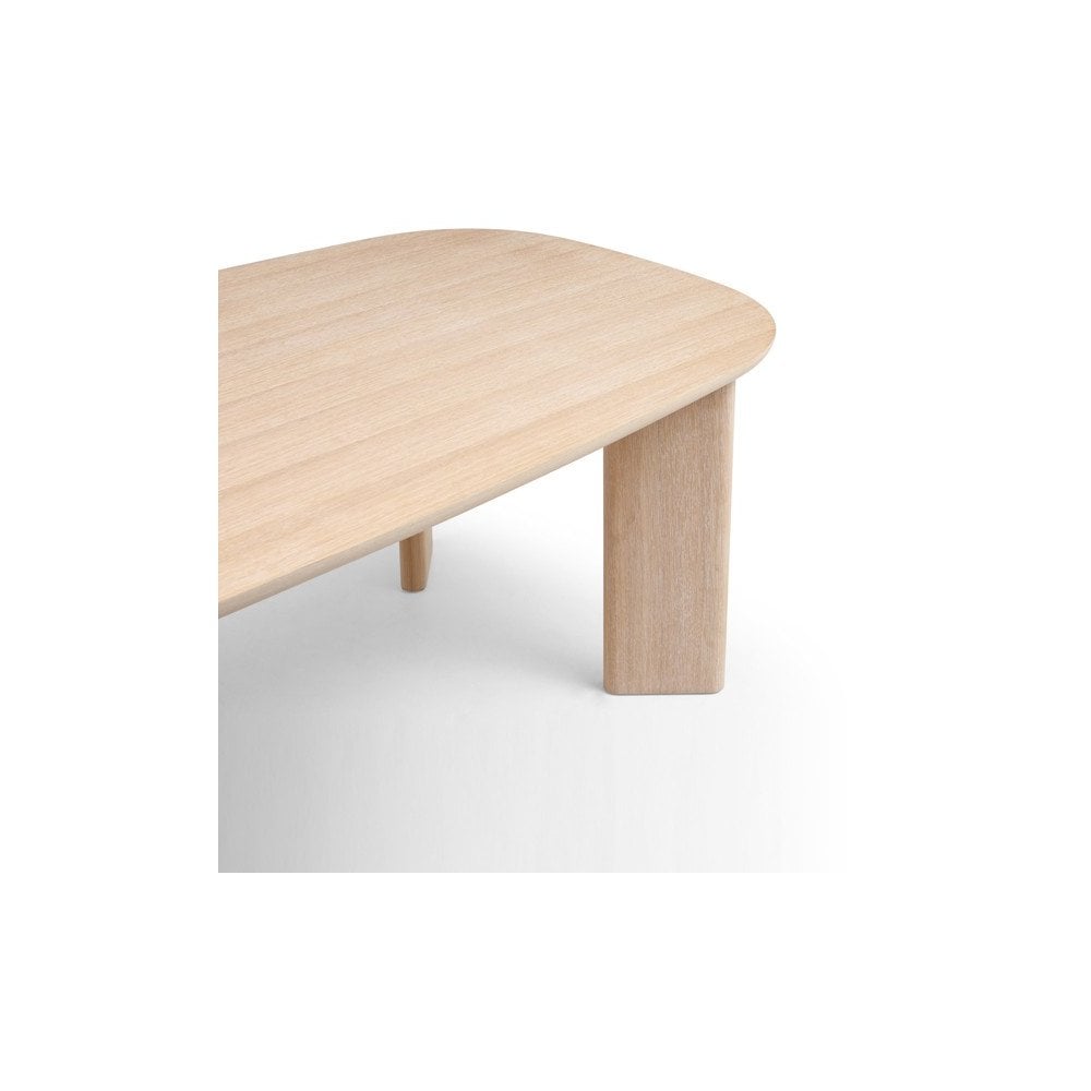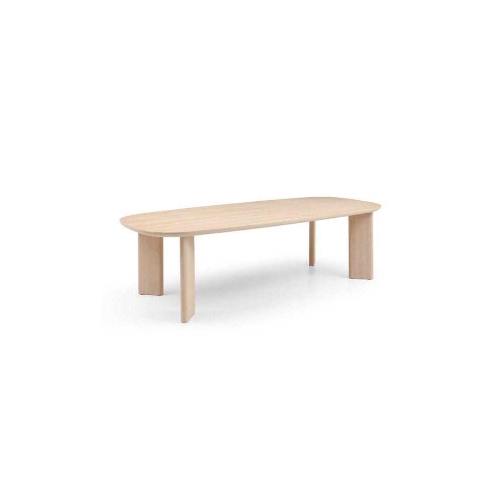 The Vasto Dining Table is a testament to Scandinavian design principles with its unique blend of minimalism and functionality. Its boat-shaped top, finished in a white wash oak veneer, embodies the natural warmth and simplicity often associated with Scandinavian aesthetics. The standout feature lies in its distinctive leg shape, which adds an element of intrigue and uniqueness to the design.