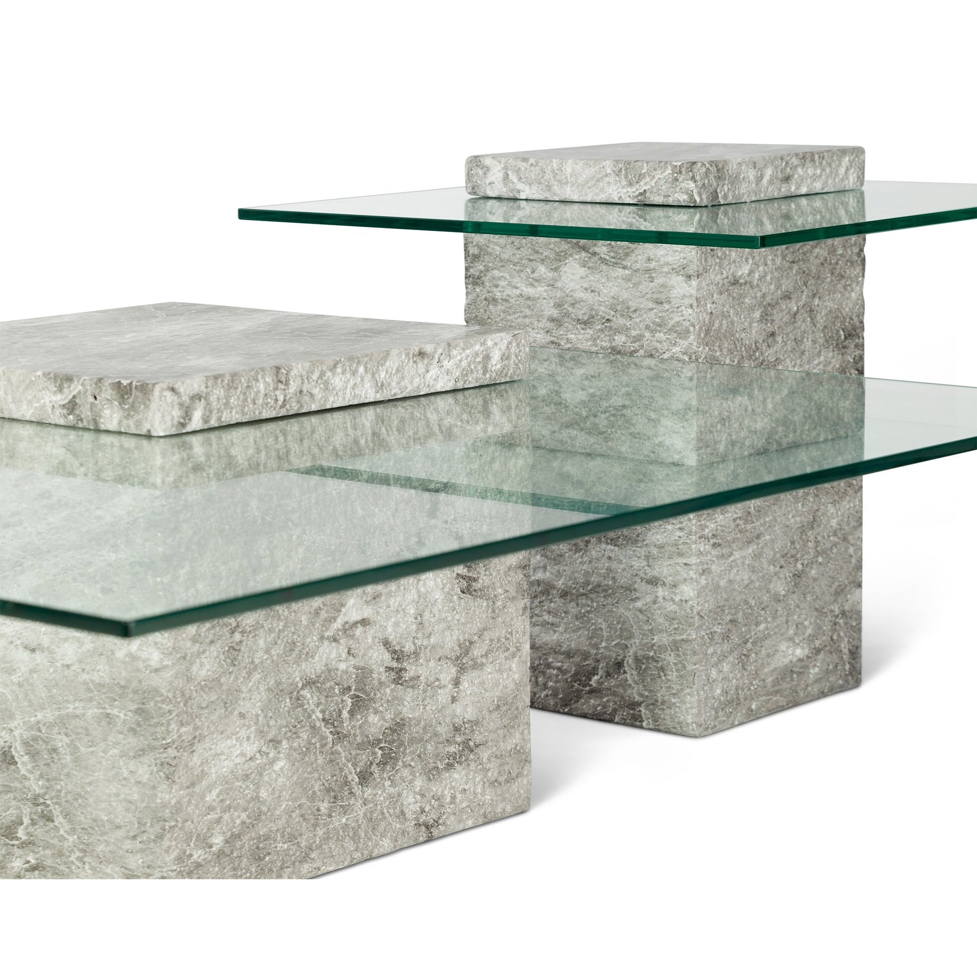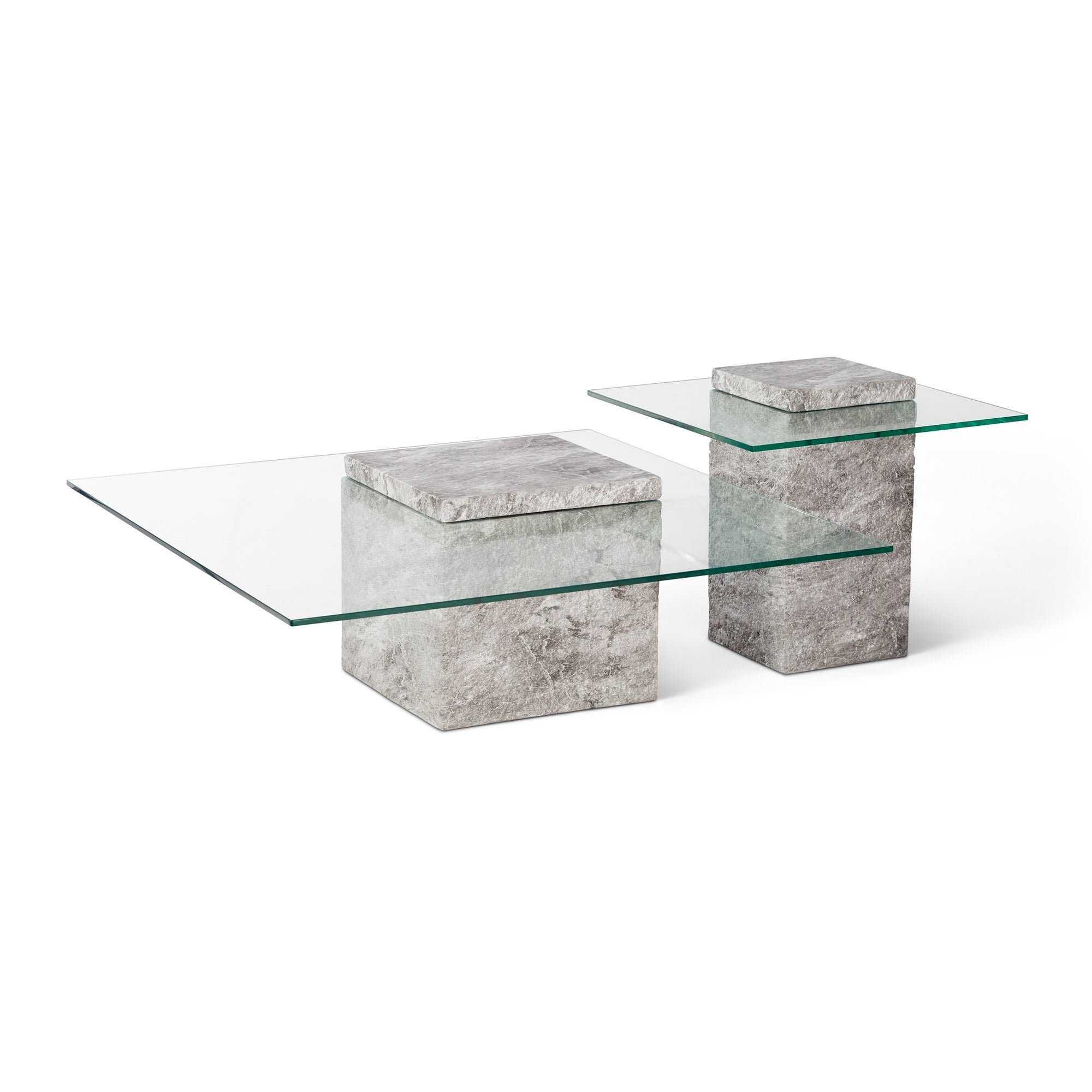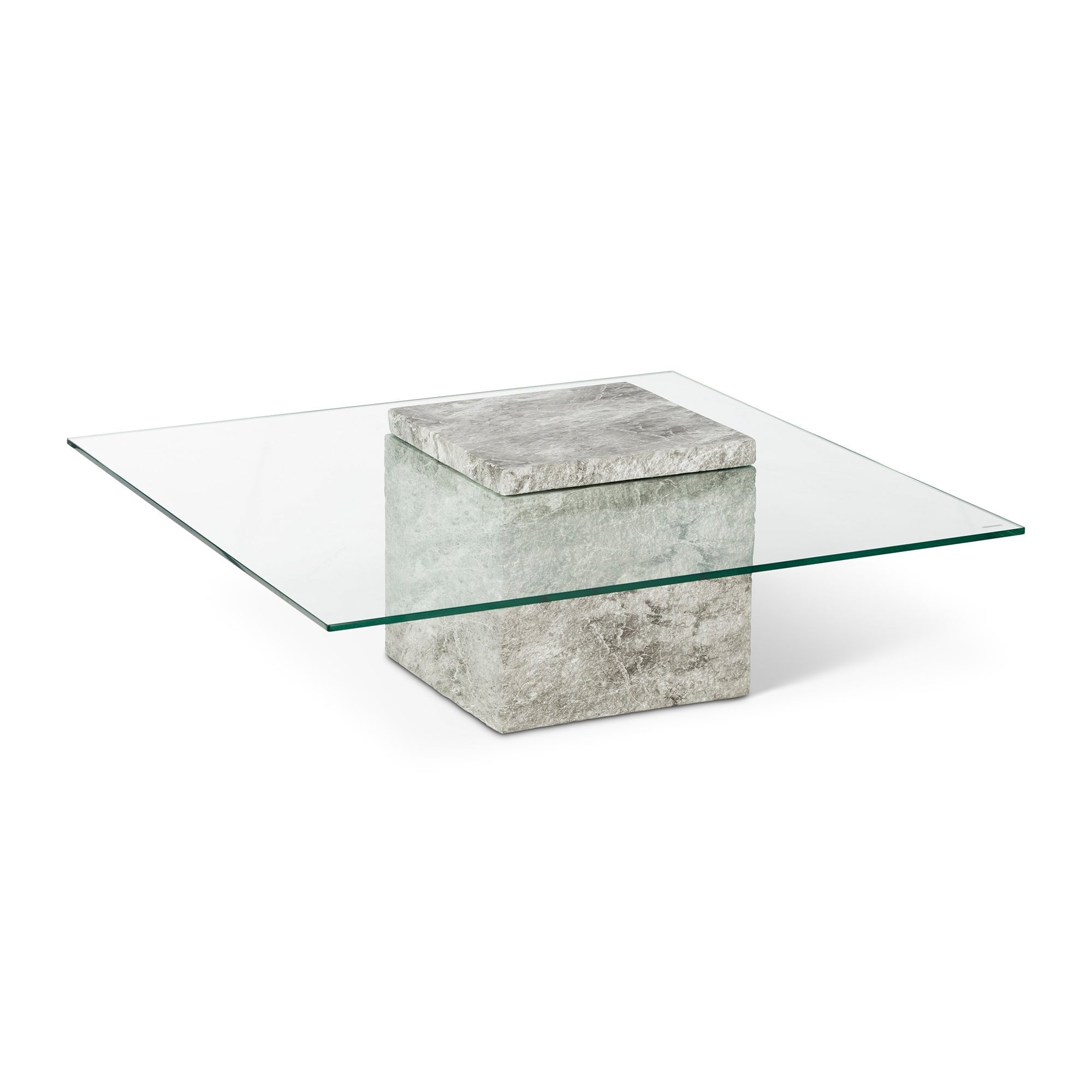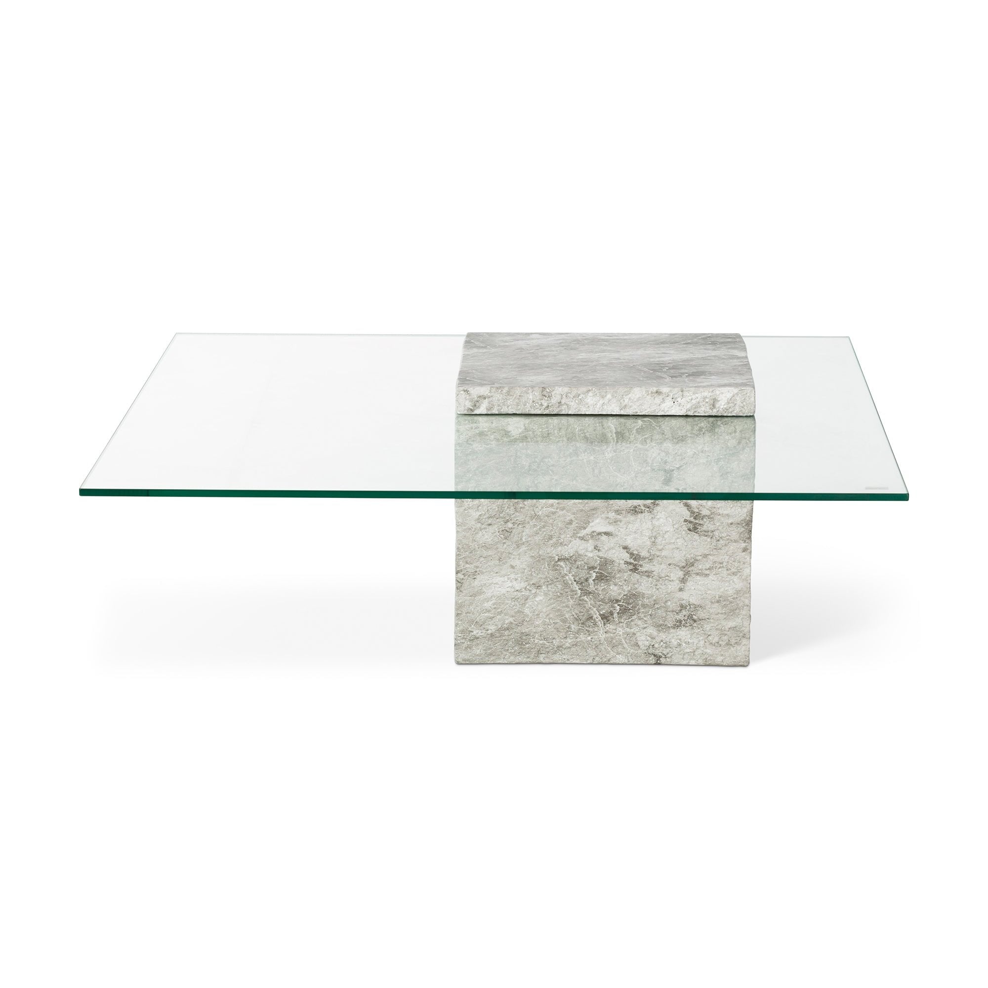 Rock Coffee Table Grey Faux Marble & Glass Top