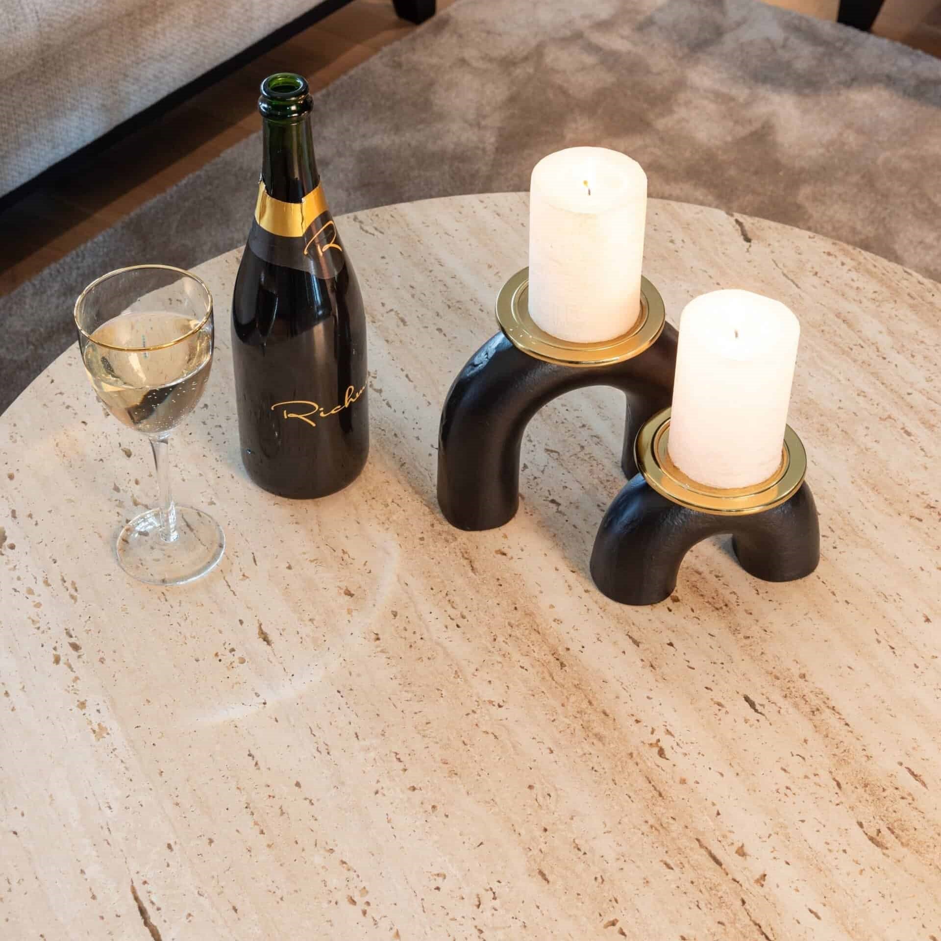 - Material: Travertine, MDF & Iron
