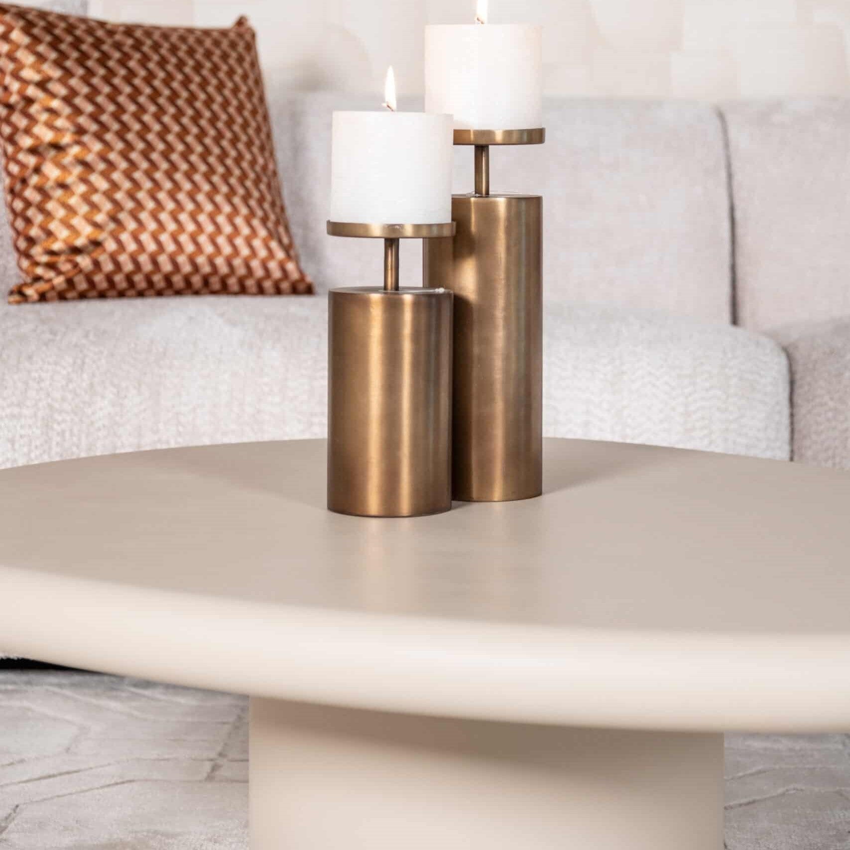 Featuring a bold, sculptural design, this table is expertly crafted from MDF with a light beige eco-plaster finish, combining modern simplicity with refined elegance. Its asymmetrical base adds a dynamic touch, while the smooth, rounded top provides ample space for occasional drinks and entertaining. The neutral tone ensures effortless versatility, seamlessly complementing a range of interior styles, from contemporary to minimalist.