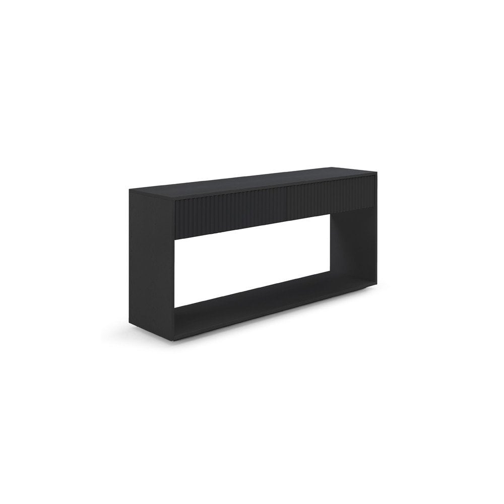 The contrast of the black lacquer finish on the drawers against the black oak veneer base and top creates a sophisticated aesthetic that exudes timeless class. With its sleek design, the Costine Console Table stands as a statement piece that effortlessly combines form and function for those who appreciate the finer details of interior decor.
