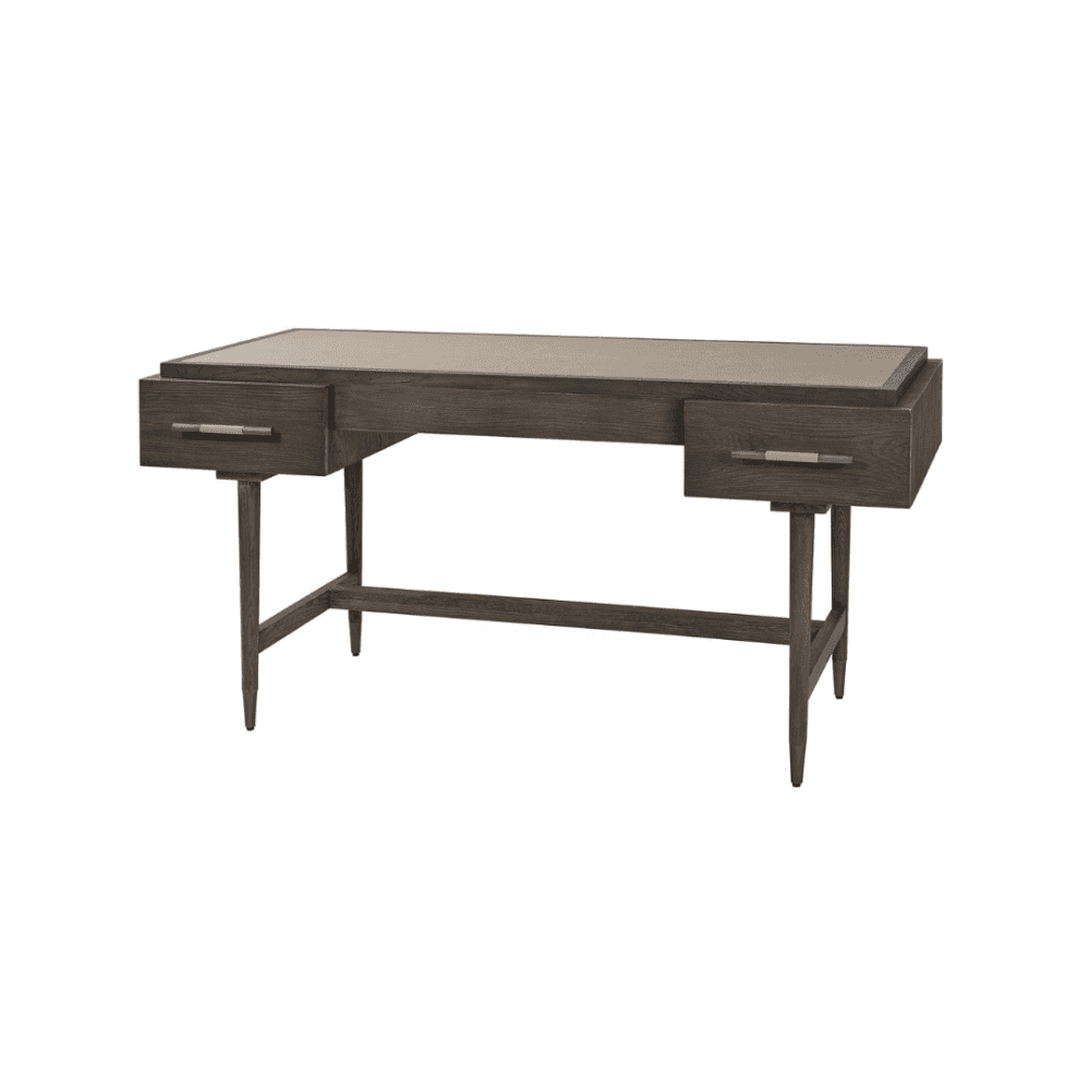 Nimes Writing Desk. Our Grey Oak furniture collection with antique brass accents and stunning shagreen. A luxurious writing desk flawlessly finished. This combination of grey oak and shagreen gives this piece a modern feel and is the perfect choice for those looking to add a designer appeal to their home. A modern writing desk to enhance your working environment.