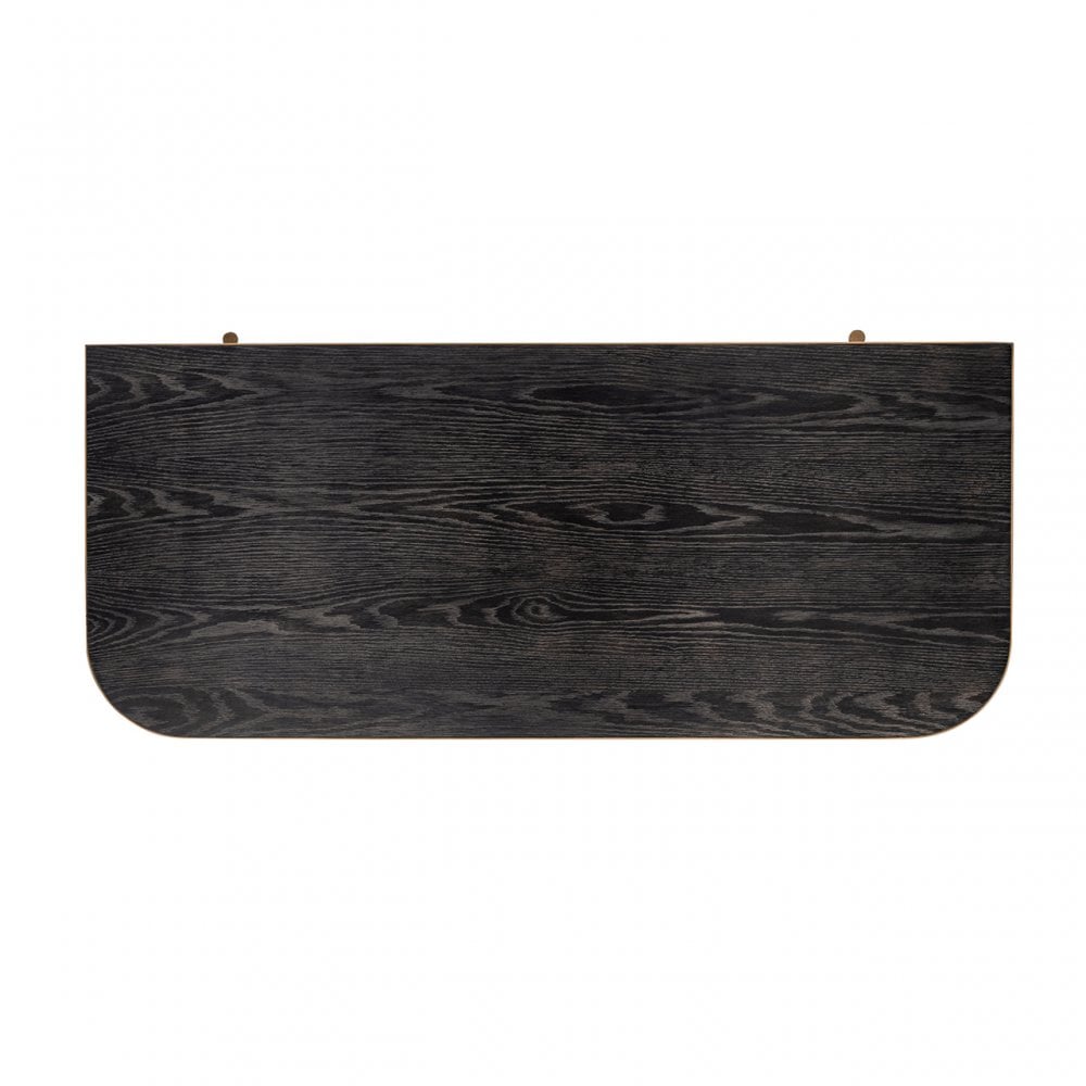 This Classio console table is crafted from quality metal and PU leather, featuring a gold finish and a shelf for storage. Place in your home office or bedroom to enhance your decor.