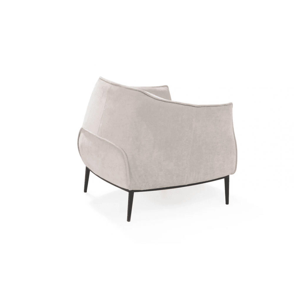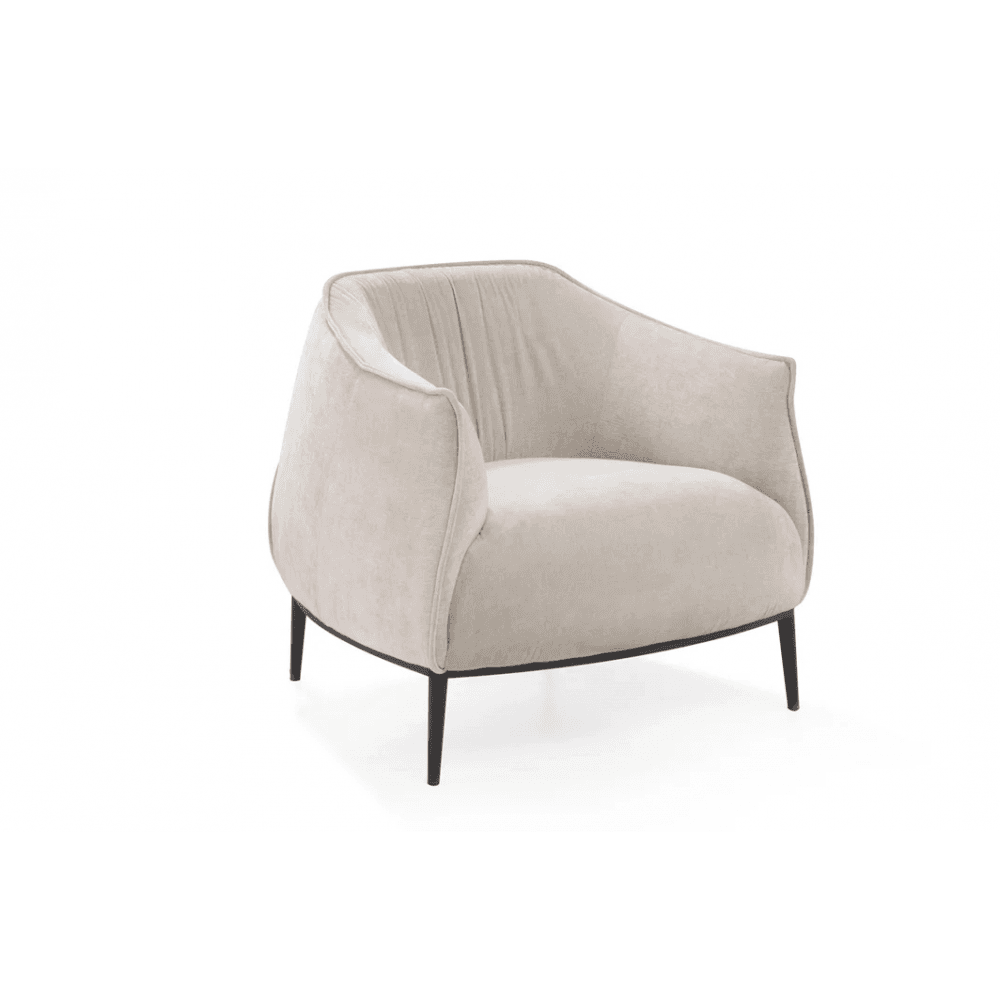 The Tyrone Lounge Chair blends contemporary elegance with luxurious comfort. Upholstered in smooth Gisele 03 beige fabric, its soft, neutral tone complements a wide range of interiors. The subtly ruched backrest adds texture and depth, creating a refined yet inviting aesthetic.