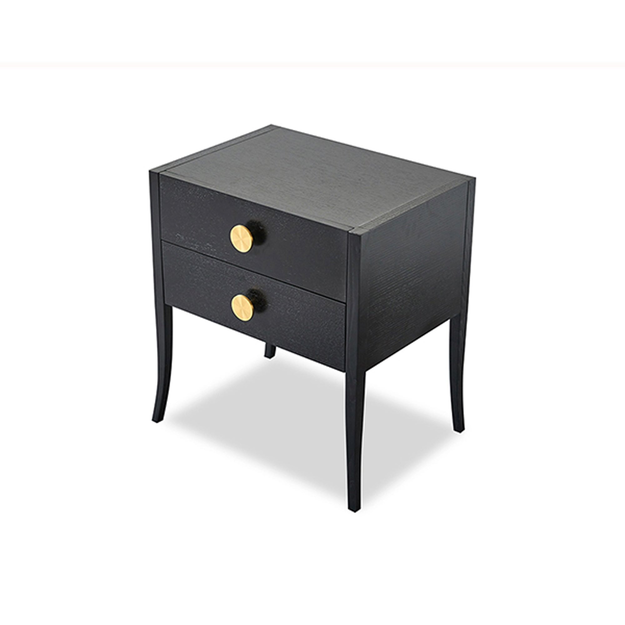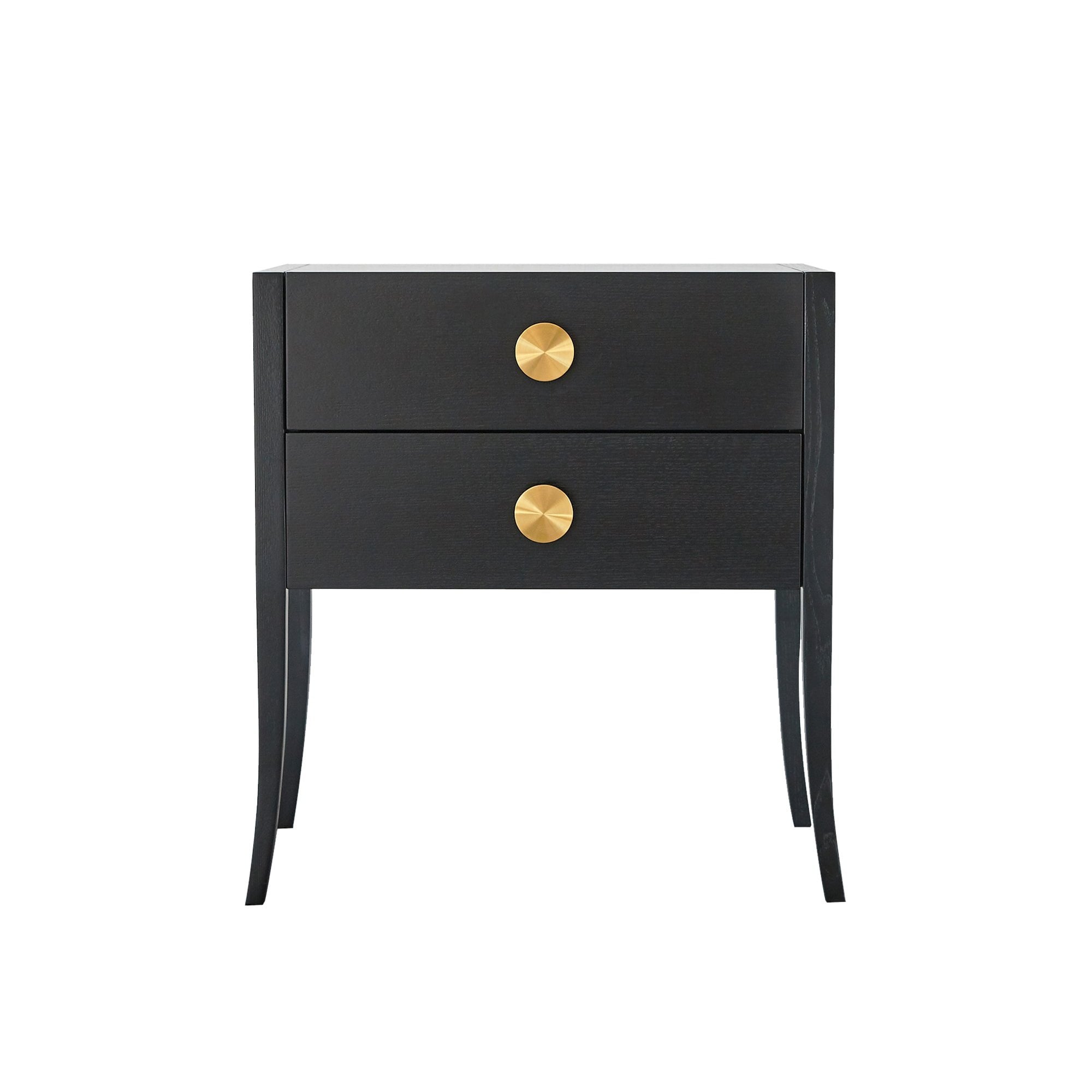 The Orly Bedside Table is a perfect blend of style and functionality, featuring quartered oak veneer and elegantly tapering legs. With two spacious drawers adorned with polished brass handles, this table is a versatile addition to any bedroom, serving as a stylish accent that harmonizes with contemporary or traditional decor.
