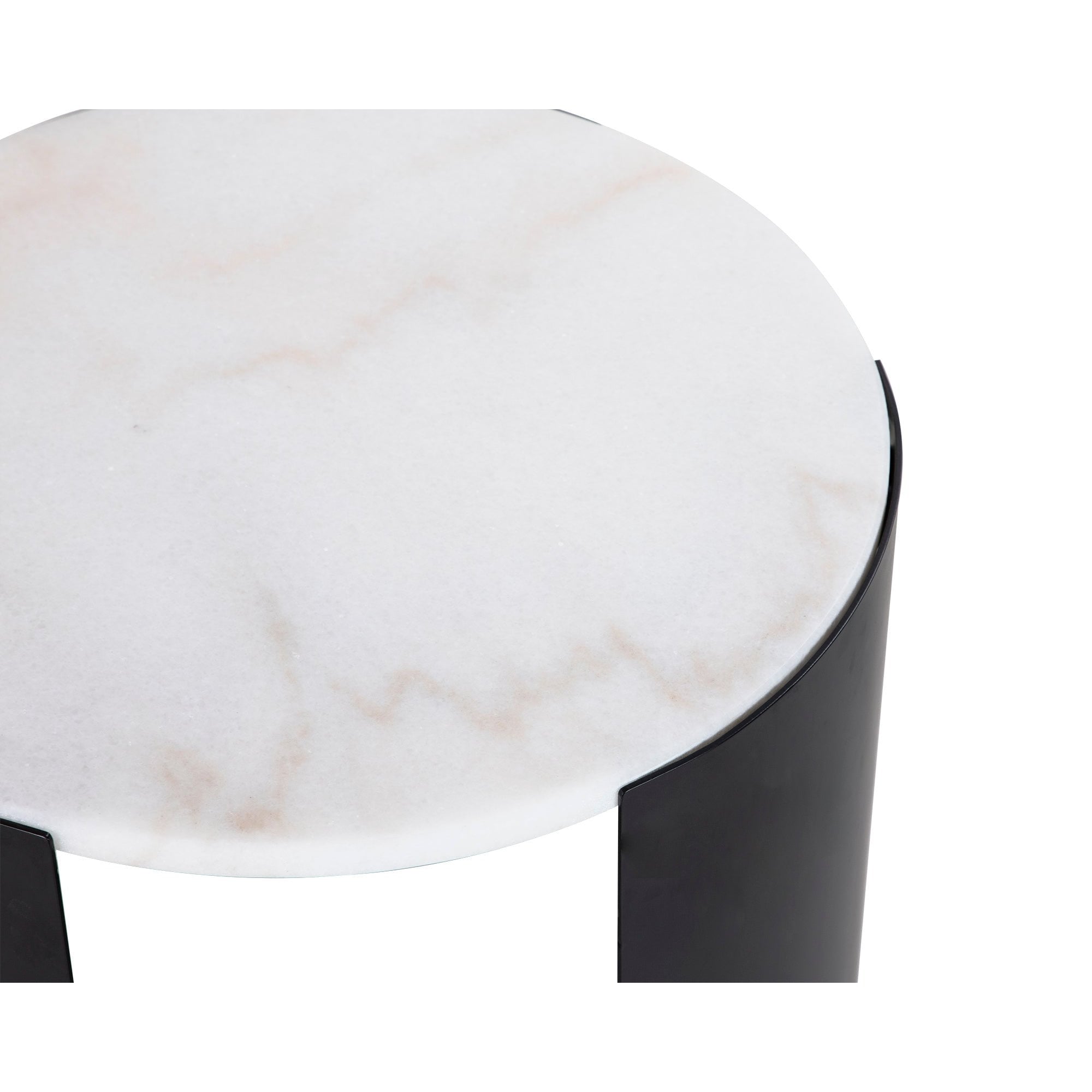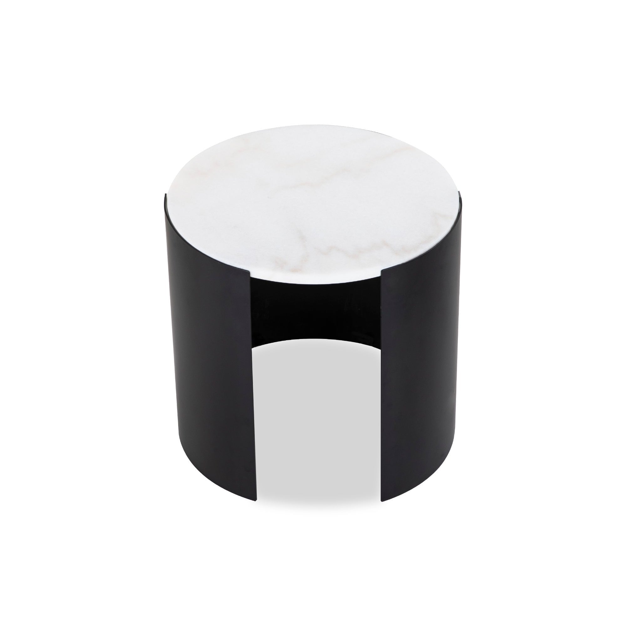 Add a touch of elegance to your living space with the Samba Side Table. Featuring a luxurious white marble top and satin bronze supports, this circular table blends contemporary design with striking proportions. Perfect for luxurious modern aesthetics, it complements both residential and hospitality settings beautifully.