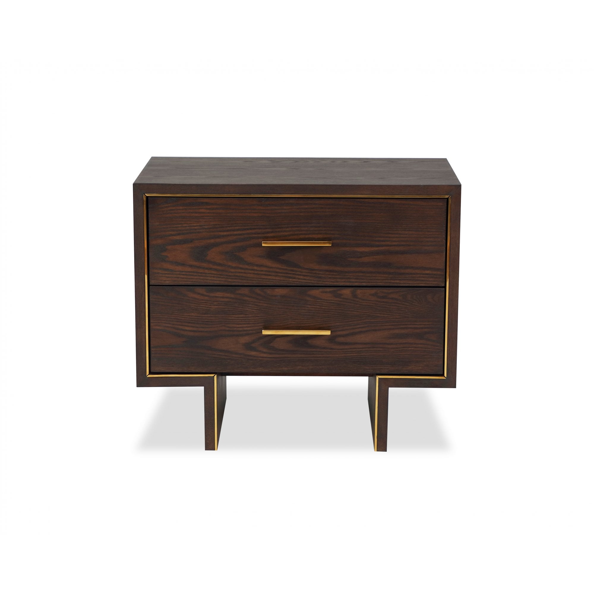 Tigur Dark Brown Ash Veneer & Polished Brass Bedside Table