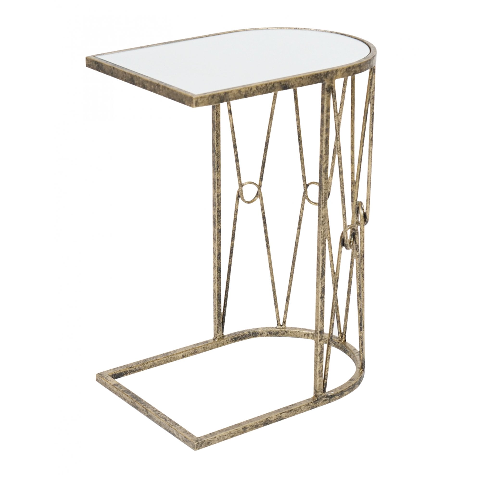 A match of our set of two tables. Drum inspired design, this little drinks table slips easily under a sofa for ease and comfort! A cute sofa table finished in antique gold and a white marble top!