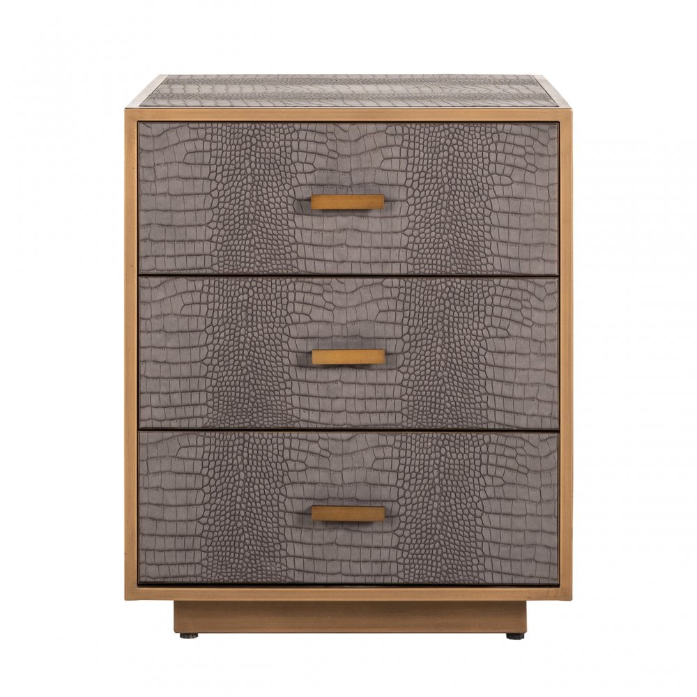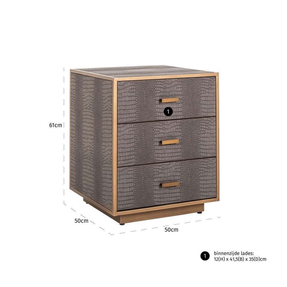 This Classio chest of drawers are crafted from quality metal and PU leather, featuring a gold finish and a shelf for storage. Place in your bedroom to enhance your decor.