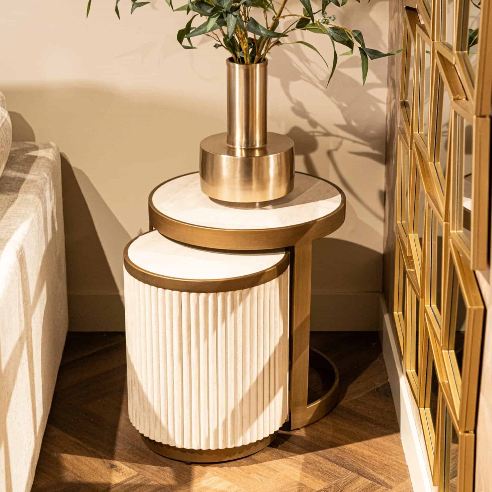 Tivoli Off White & Gold Set of 2 Ceramic Top Side Tables
