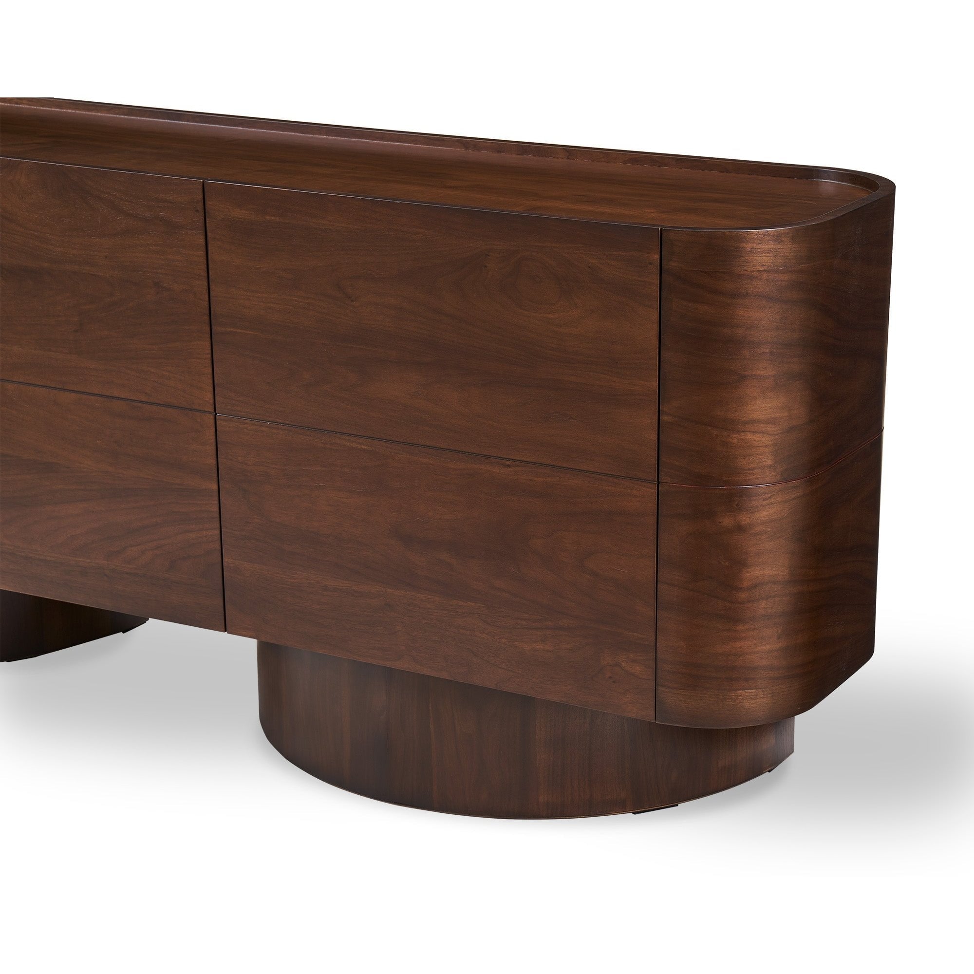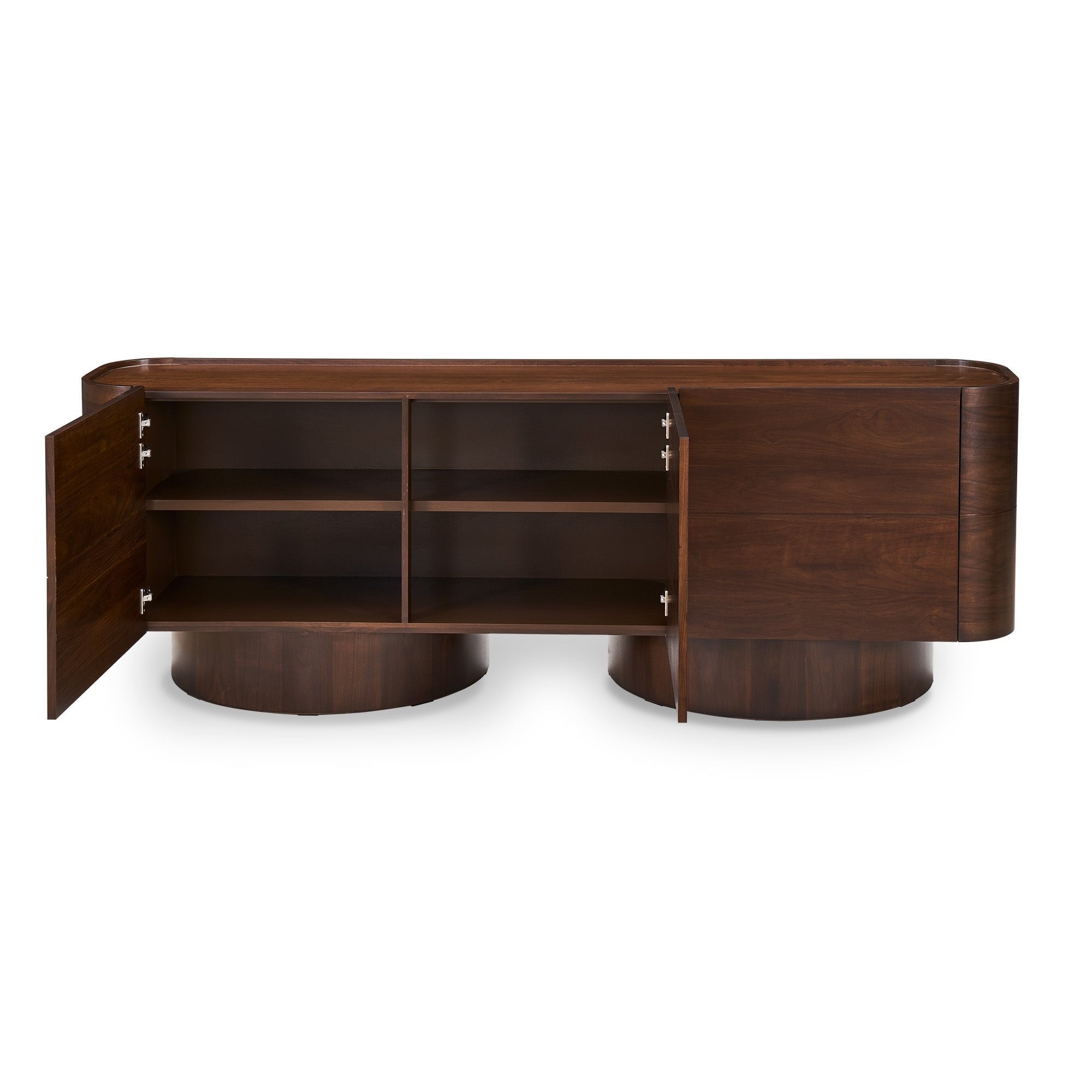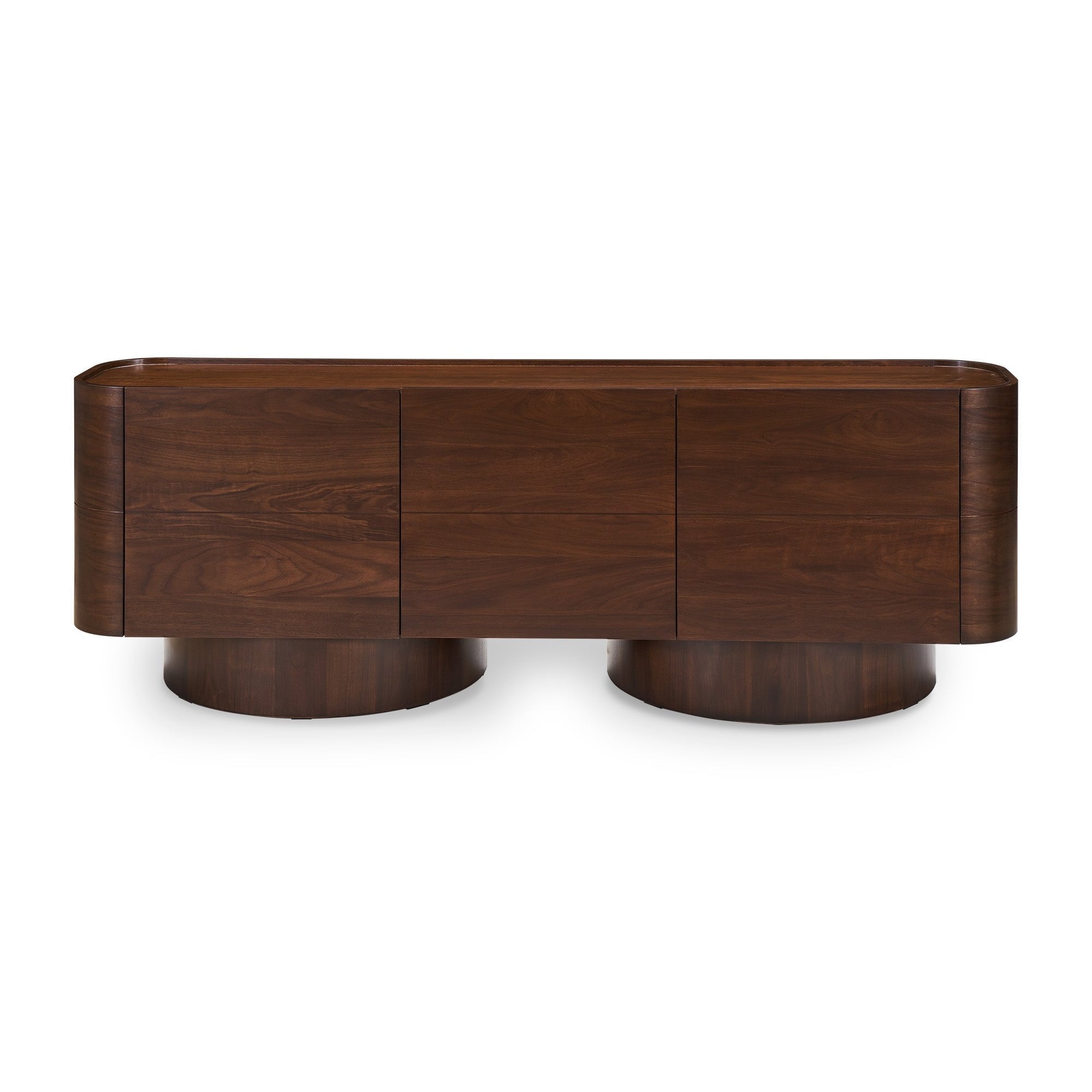 Elevate your home decor with the Butka Sideboard in Natural Walnut, offering a perfect blend of sophistication and practicality. Its rich dark brown oak finish enhances any interior, while its striking two-legged design adds character. With three doors and two shelves in each section, this sideboard presents ample storage options, ideal for both residential and hospitality settings. Explore the beauty of wood with this piece that elevates ambiance and showcases functionality.