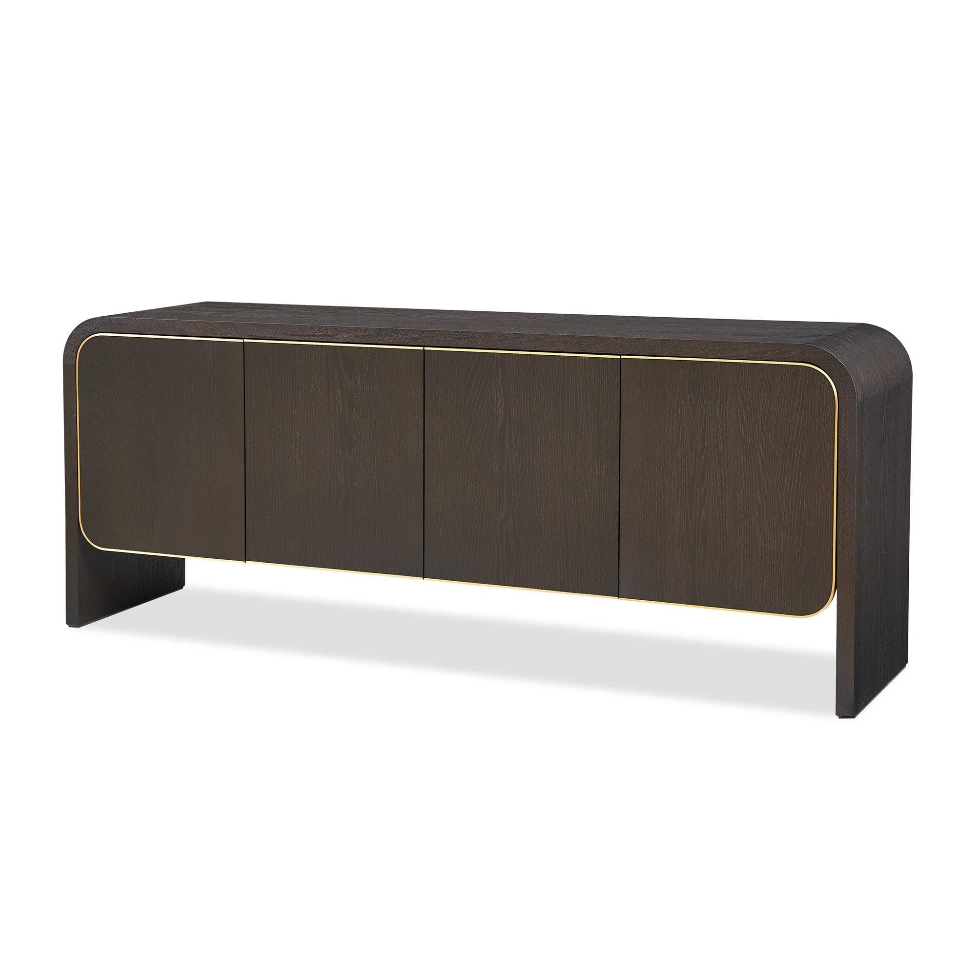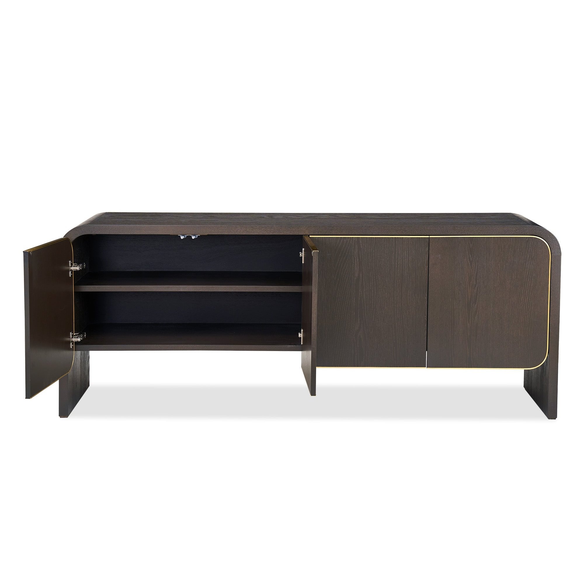 Walter Sideboard Dark Grey Oak Wood & Brass Four Door
