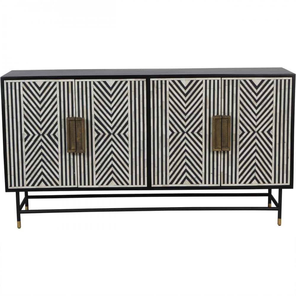 Delaney Sideboard Black Wood & White Bone Inlay Four Door