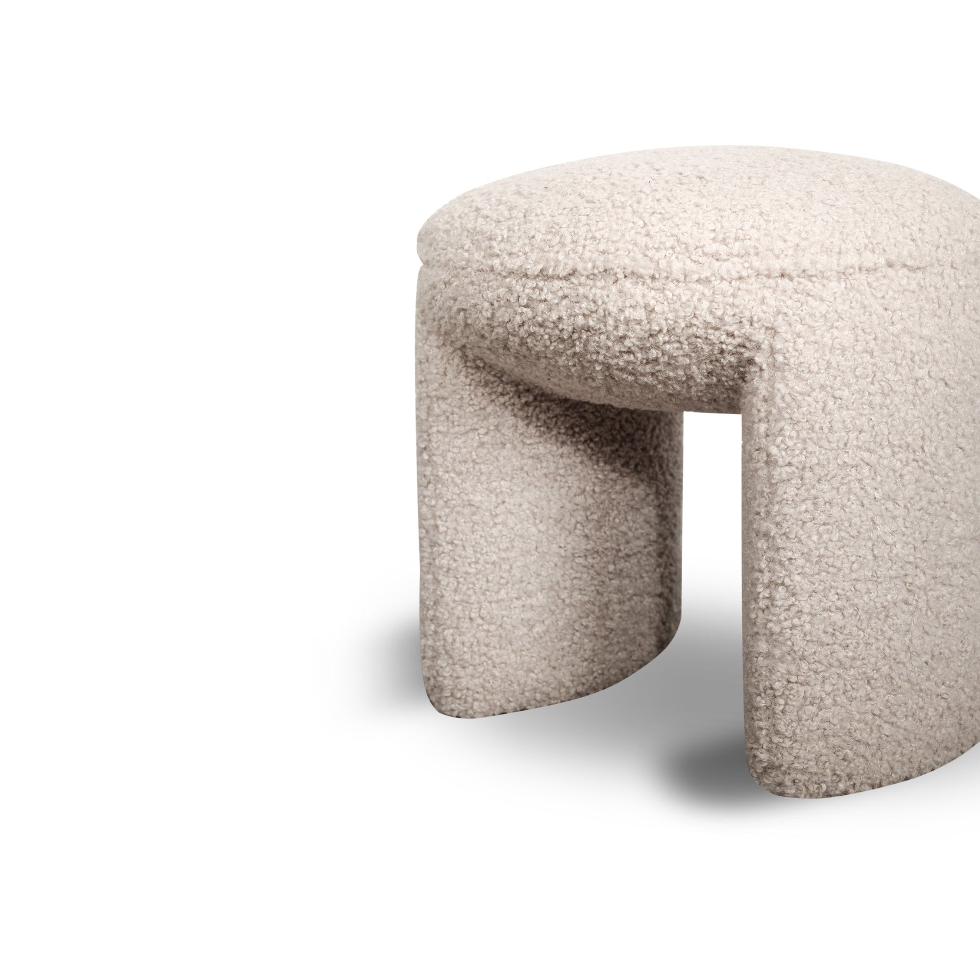 Discover the playful elegance of the Kramer Stool in Alpaca Sand, designed for enduring comfort. Its circular seat and finely tailored legs offer a modern touch, perfect for use as a window seat or end-of-bed bench. Elevate your interior style with this versatile, chic piece.