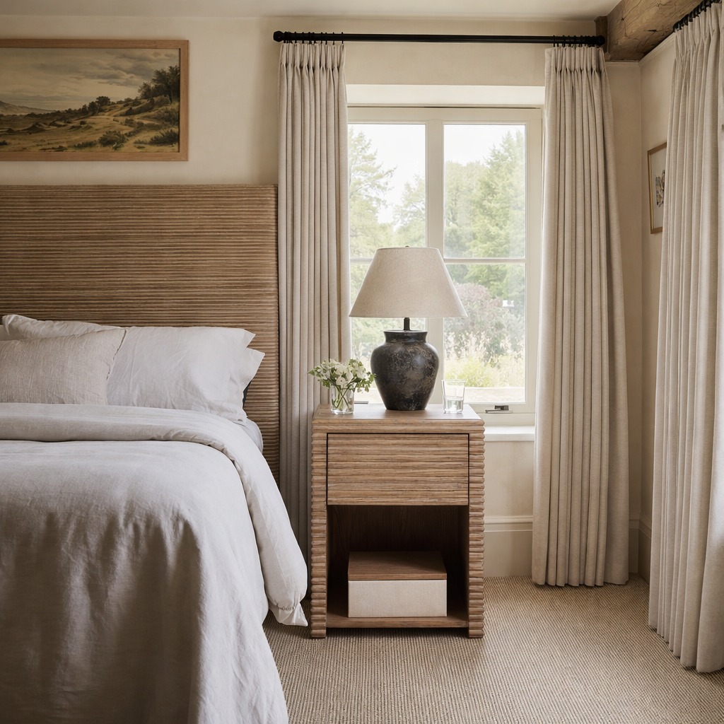 Wickham Ribbed Oak Wood Bedside Table