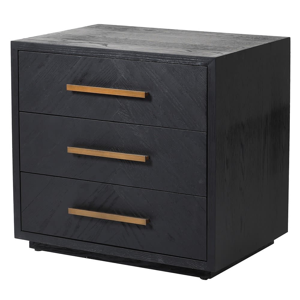 Bedside Table Black Oak Wood with Brass Handles 3 Drawer