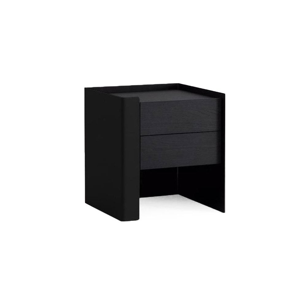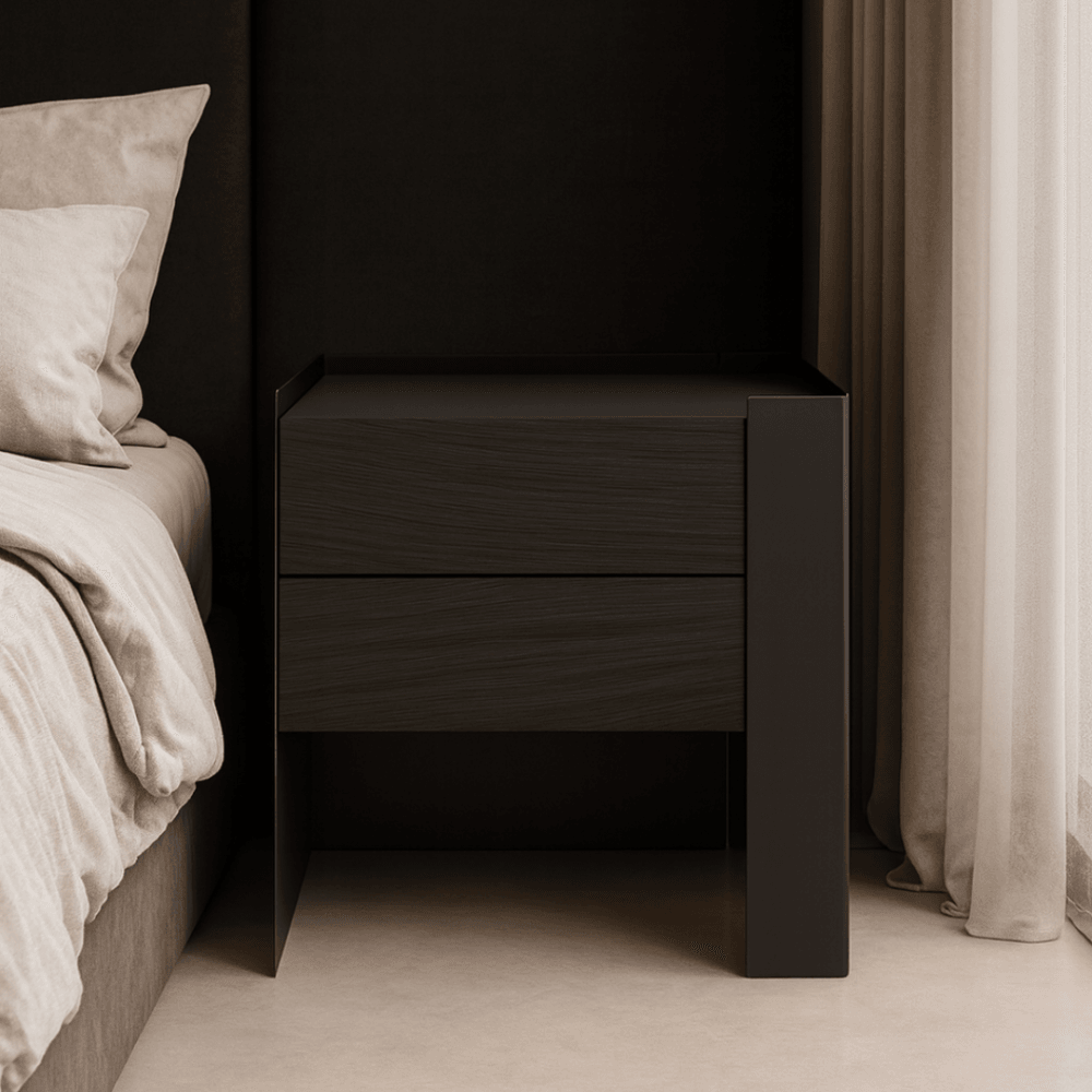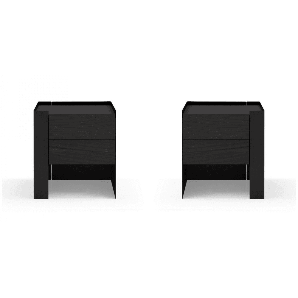 The Tunica Bedside Pair is the epitome of sleek and contemporary design. Their left and right facing configuration adds a unique twist, making them a standout choice for modern interiors. The black on black features, from the finish to the hardware, imbue these nightstands with a trendy and bold aesthetic. Their chic and sophisticated appeal is undeniable, effortlessly elevating any bedroom's décor. The Tunica Bedside Pair isn't just functional; it's a statement piece that embodies modernity and sophistication, adding a touch of bold style to your personal space.