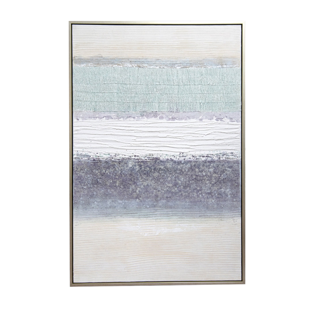 Enhance your minimalist décor with the soothing hues of the Leda Canvas. Featuring a serene blend of blue, green, and grey, this artwork provides a subtle wash of color that complements clean and simple aesthetics. Its understated elegance makes it a perfect addition to create a peaceful and uncluttered environment.