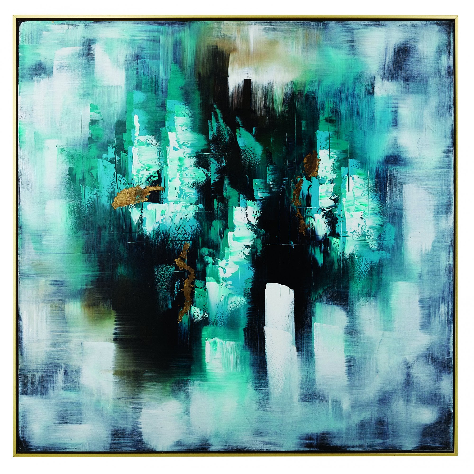 Contemporary abstract framed canvas with coloured strokes of white, gold, grey & black