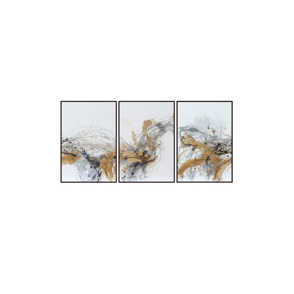 The Palmier Wall Art is a captivating trio of abstract oil paintings that invites you to embark on a visual journey through a realm of imagination and creativity. Each canvas is meticulously hand-painted with bold and expressive brushstrokes, forming an intricate tapestry of colours and forms reminiscent of swaying palm trees on a breezy day. The set of three canvases, elegantly framed in black, forms a harmonious composition that evokes a sense of modern sophistication and artistic intrigue.