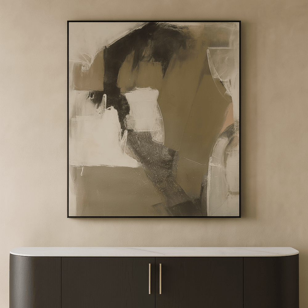 Indulge in the captivating allure of this hand-painted oil painting, designed to envelop your space in a moody and refined atmosphere. Each brushstroke holds the essence of the artist's vision, transforming the canvas into a mesmerizing tapestry of emotions and intrigue. The meticulously chosen black frame enhances the drama, casting a shadow of elegance and depth that complements the artwork's moodiness. Whether gracing the walls of a living room or an office, this masterpiece serves as more than just decoration—it's a gateway to a realm of contemplation and sophistication, a conversation starter that adds an element of timeless intrigue to every glance. Dimensions: 1300mm W x 1500mm H