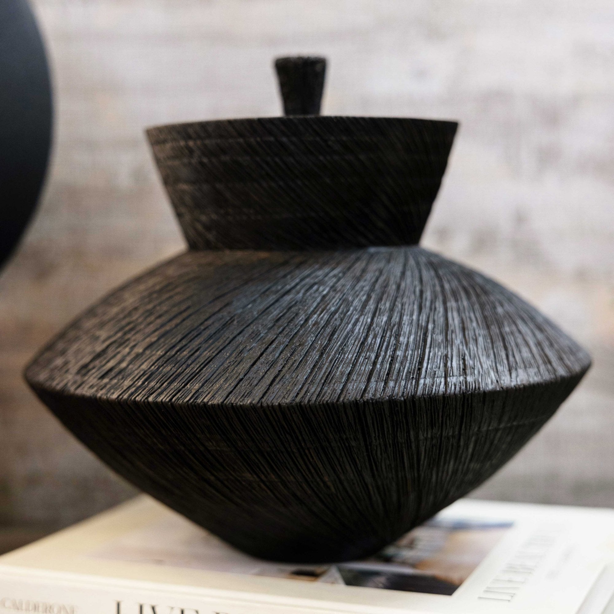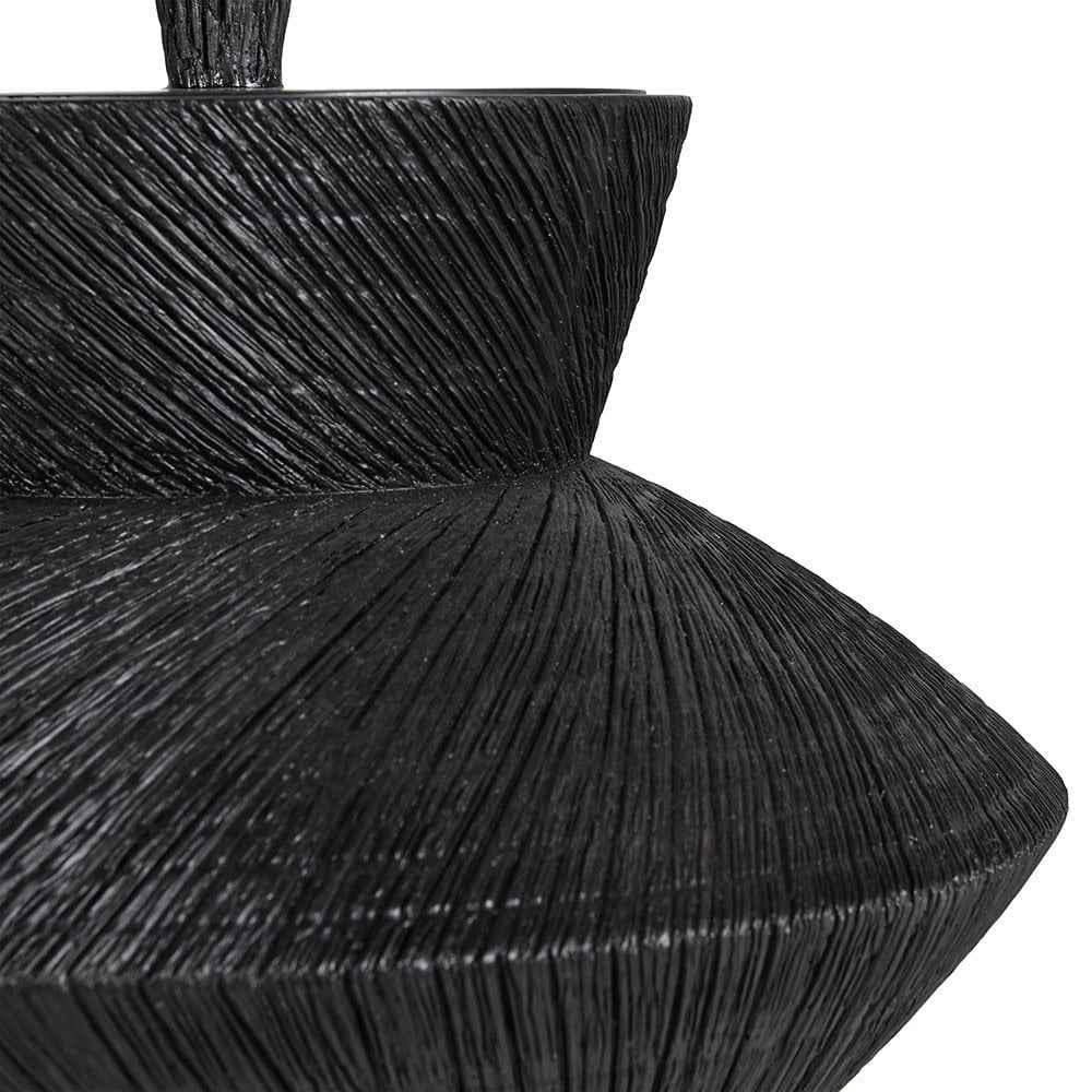 Large Low Black Yakisugi Textured Pot