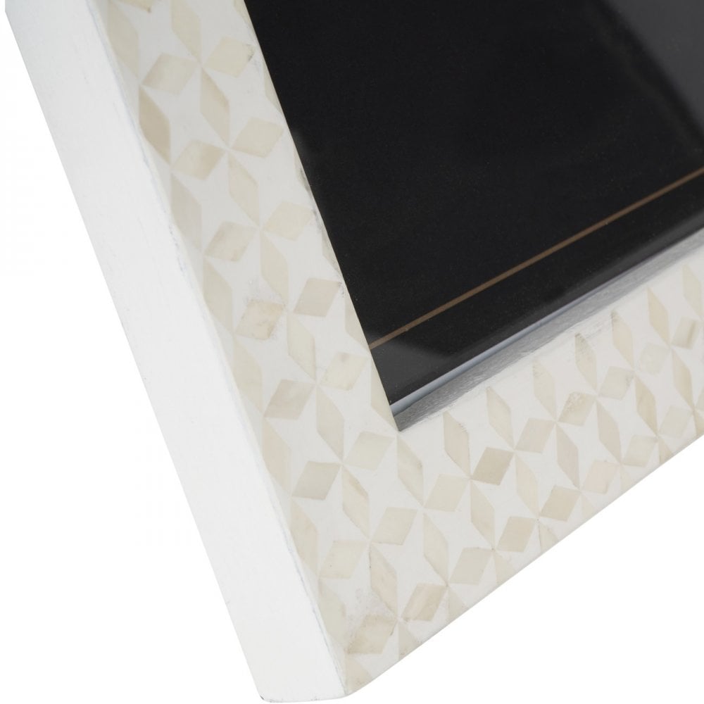 The Aspen Bone Inlay Photo Frame is beautifully adorned with an intricate bone inlay pattern, offering a timeless and elegant aesthetic. Its sleek, clean lines and refined details make it a perfect addition to any space, showcasing cherished memories in a striking yet understated way. This frame complements the Aspen collection, making it an exquisite accent for any home or office. The large size will fit a photo measuring 28cm x 35cm, while the small size is a standard 12.5cm x 17.5cm. This large frame has a stand and hooks for wall mounting.
