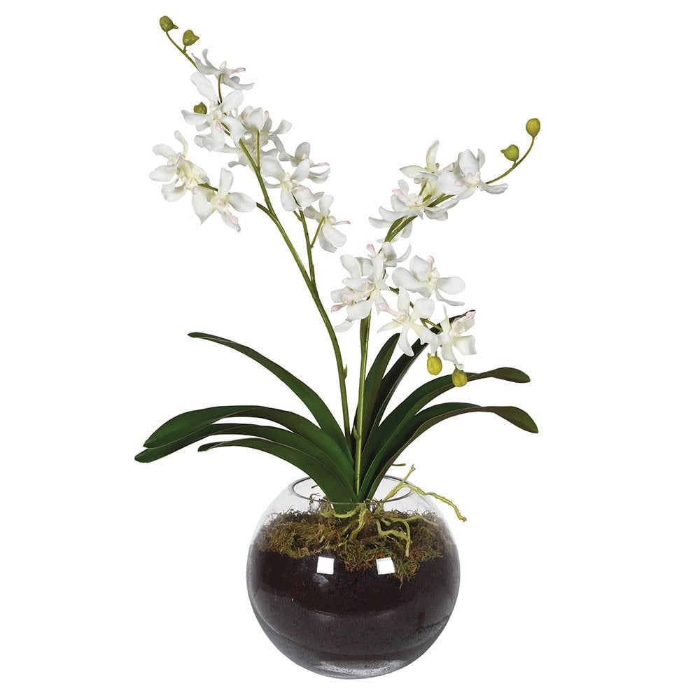 - White Orchid with Moss in Glass Vase