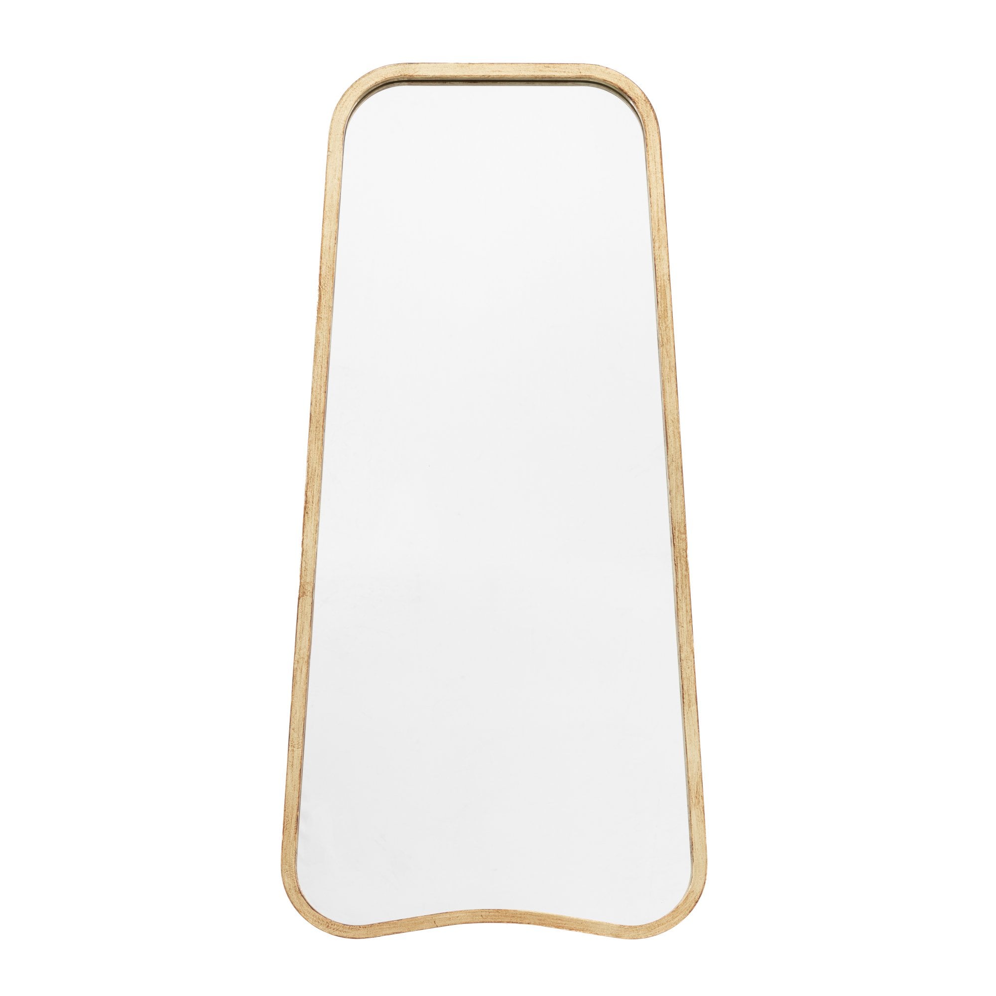 Sleek and understated, the range of stylish leaner wall mirrors adopt distinct flowing curved corners and gold metal frames.